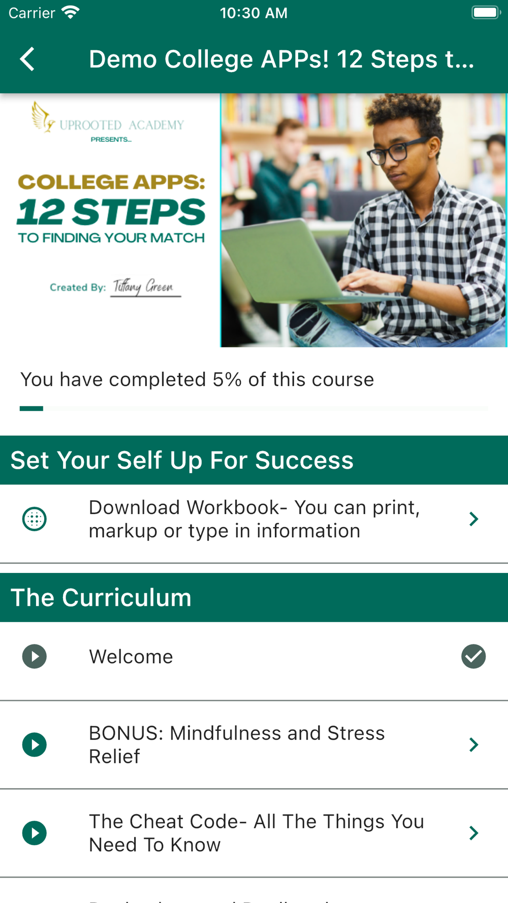 Uprooted Academy Offers College APPs: 12 Steps to Finding Your Match Mini-Course and the Full Course. The mini-course is a free program that gives you access to videos from our larger program as well as some organizational guides that can get you started on feeling confident and empowered through your college application journey. The full course takes students through 15 hours of video content covering the how-to of the college application process. Students navigate the cheat code to learn the lingo, build their list, understand financial aid, and much more. The accompanying workbook guides students through activities around the general essay, supplemental essay, making the best decision, and organizing submissions, decisions, and scholarships! Bonus content includes voices from the admissions department, mindfulness videos, and videos from college alumni on different types of colleges. All students that are connected to Uprooted Academy get exposed to our platform filled with resources on different majors, newsletters, and live events. The purpose of this program is to not just teach students what to do, but how to do it. These videos will be with you step by step as you get through the college application from search to submit to stepping foot on campus!