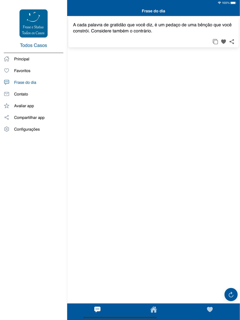 Você poderá editar as frases e criar imagens para publicar no stories. Você receberá recomendações de frase do dia e poderá compartilhar onde e quando você quiser.