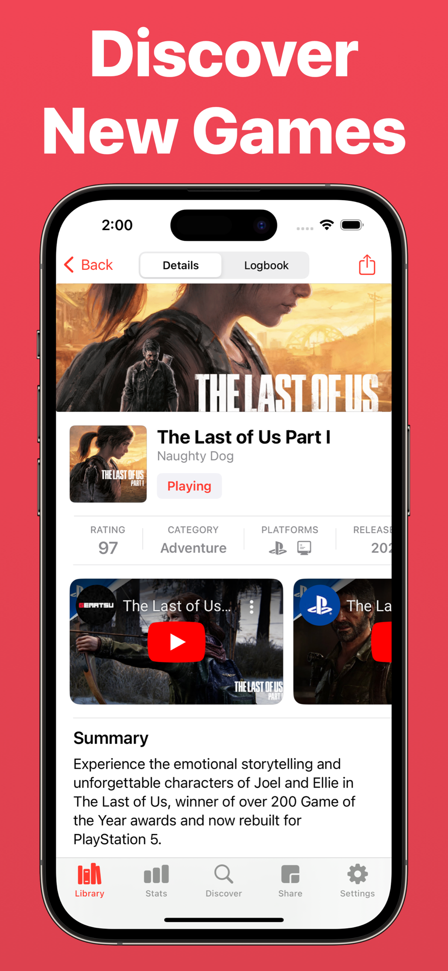 Log and track your playthroughs, progress, and playtime for each game. Gain valuable insights into your gaming habits and milestones, helping you better understand and appreciate your gaming journey.