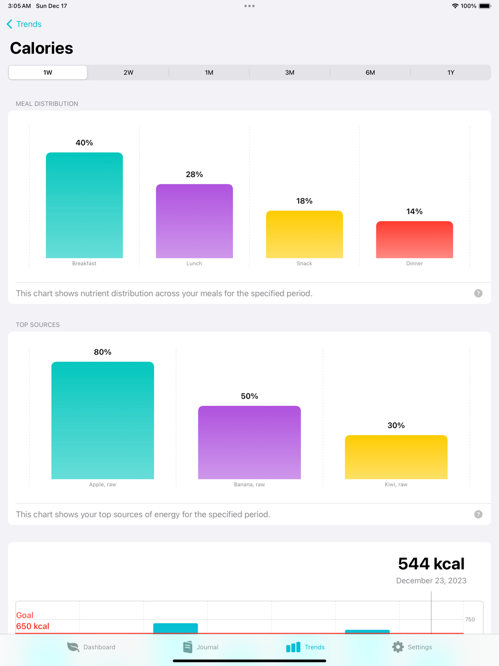 Define and monitor your nutrition goals including macronutrients, vitamins and minerals, and get a clear picture of your nutrition and the impact of your food through beautiful and informative charts, and much more.