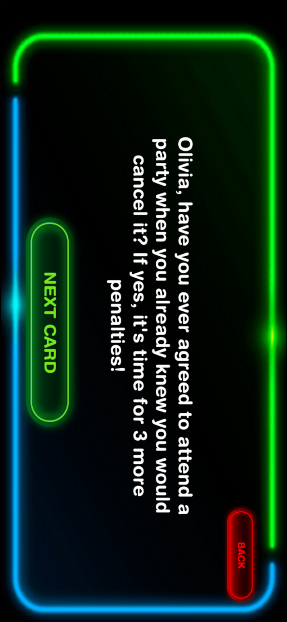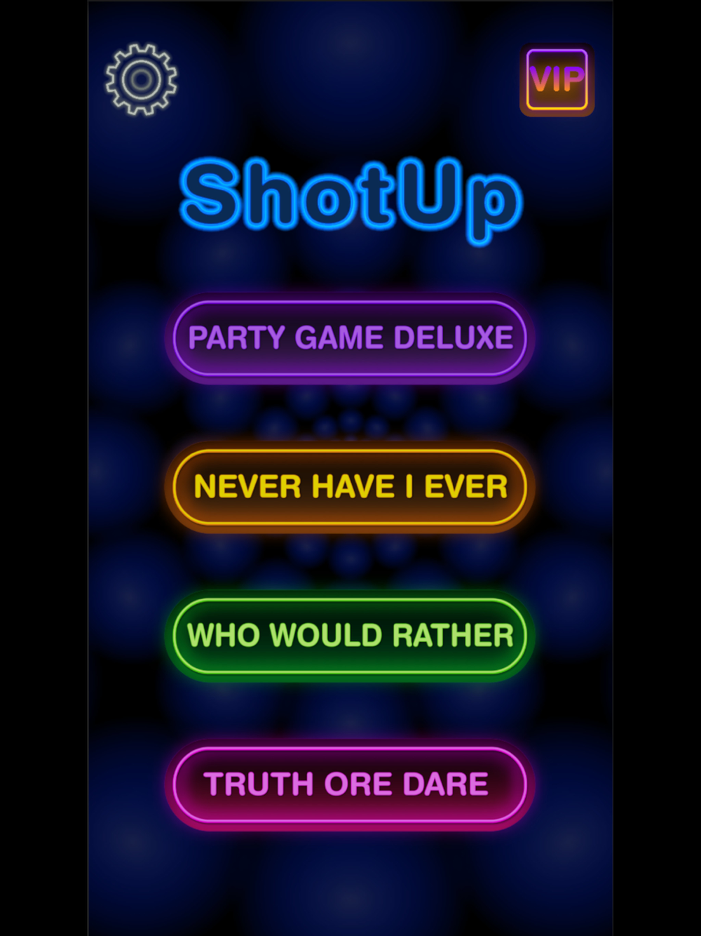 You can choose from four different party games: "Never Have I Ever," "Who Would Rather," "Truth or Dare," and "Party Game Deluxe!"
