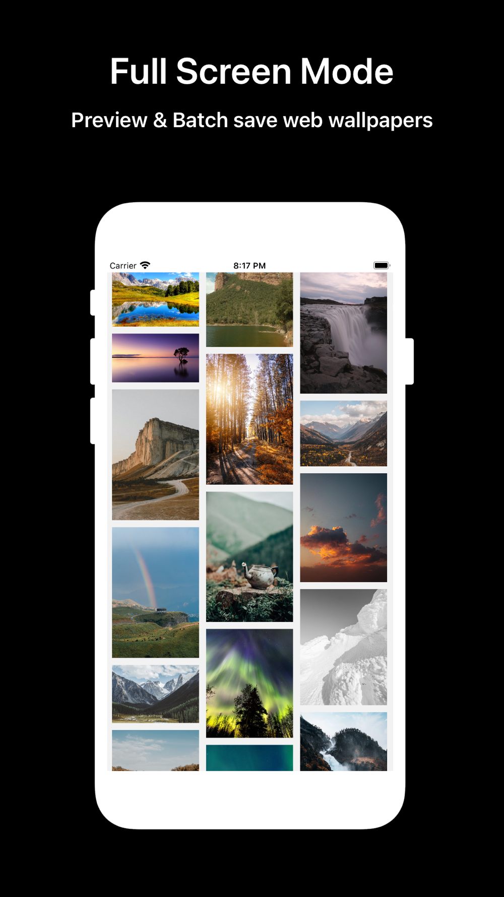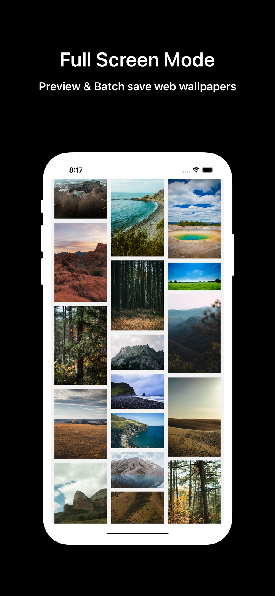 • Full screen model, preview and batch save web wallpapers
