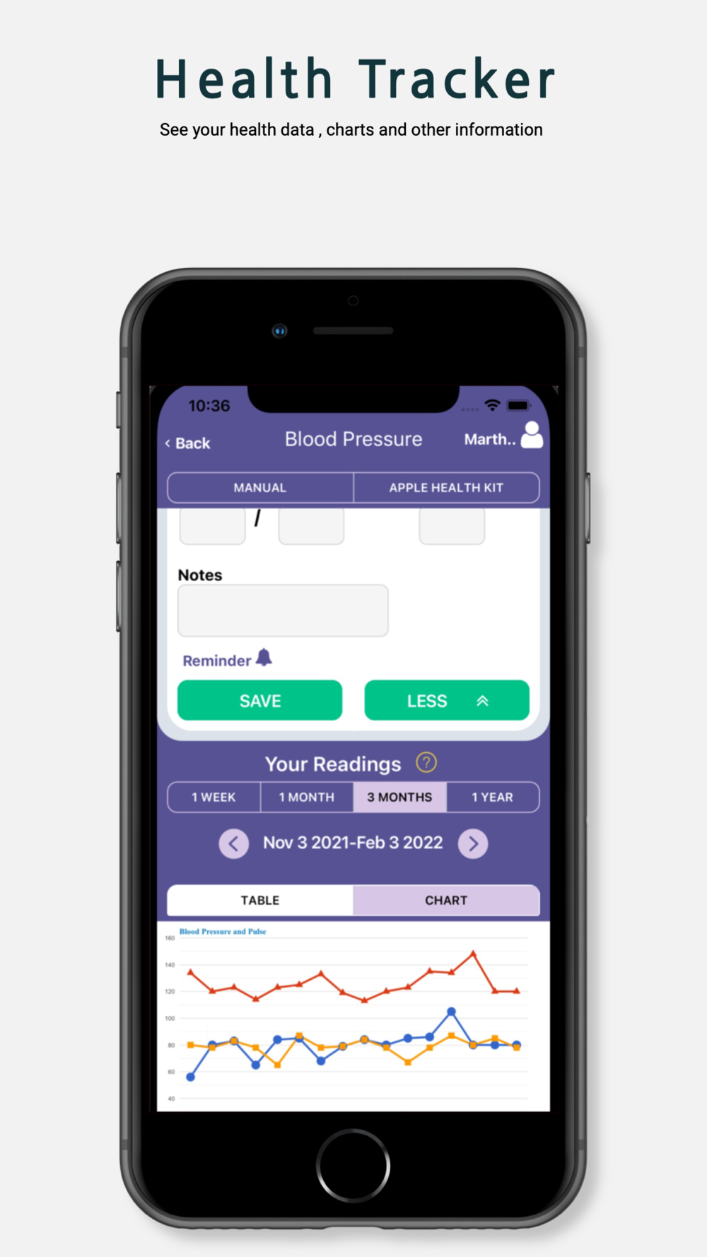 - Trackers help you manage your health conditions (including cancer, cardiac health, chronic disease, mental health, and elder care), share the information with your doctor(s) and/or care provider(s), view your health data in chronological order as well as see and monitor the trends over time with easy to view charts and tables. This app also allows you to have all of your health information in one convenient and reliable place.