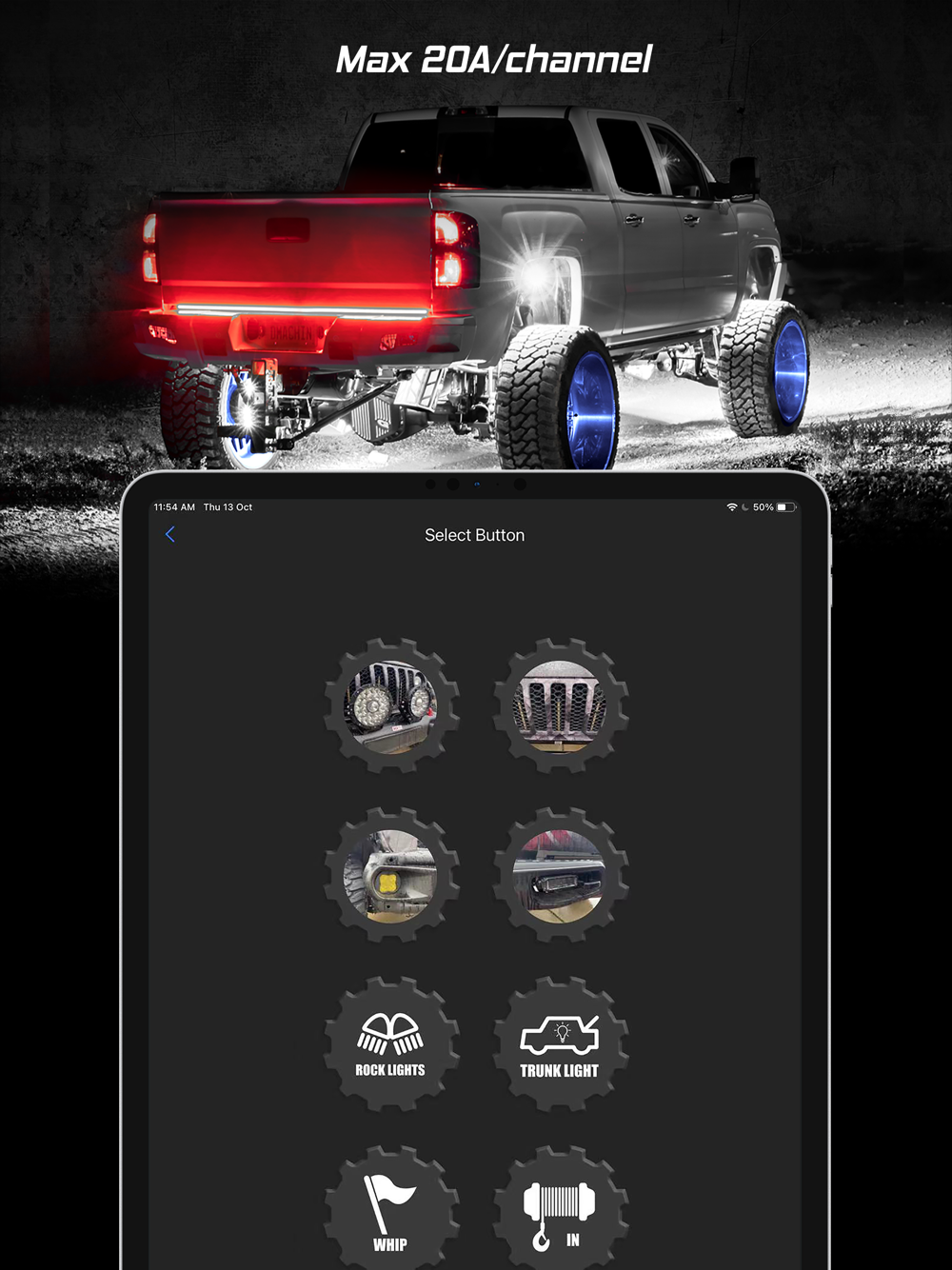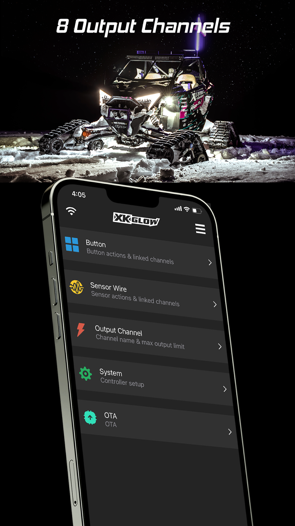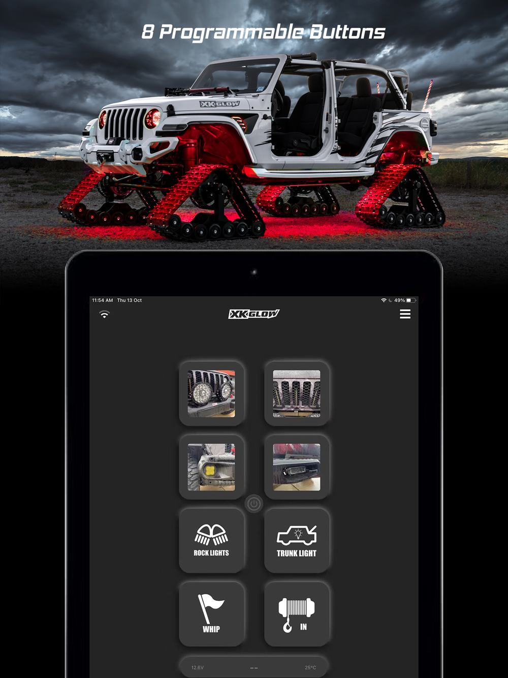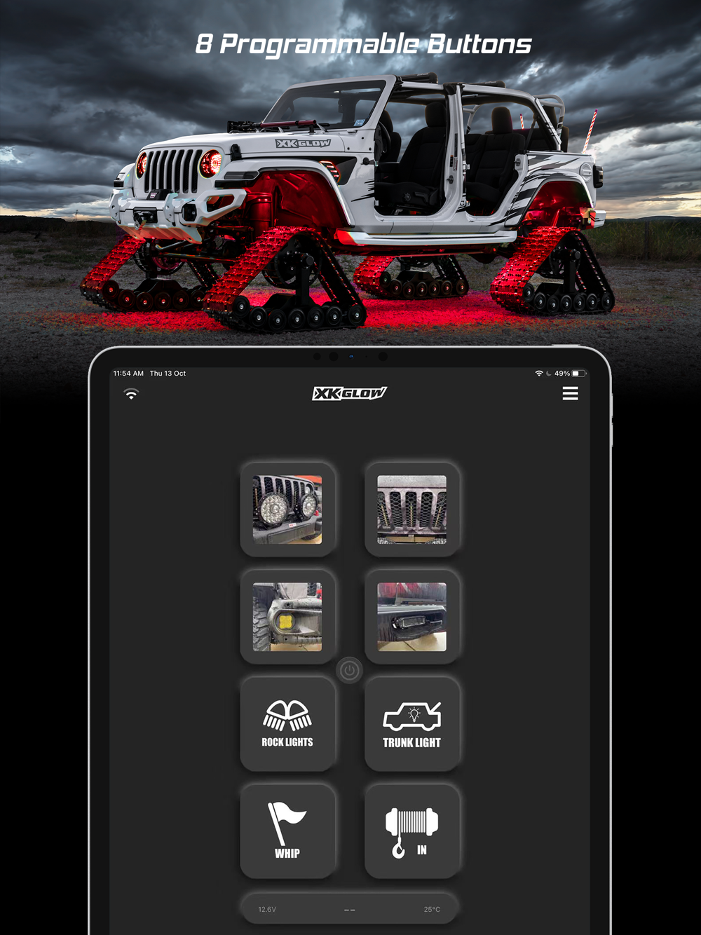 The XKcommand system allows you to connect all 12V accessories in one hub and program the button functions through the app. The XKcommand controller is required to work with this app.