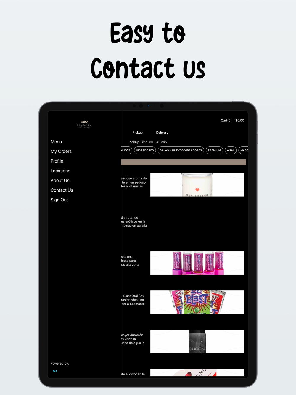 Con PANDORA EROTIC SHOP APP puede pedir fácilmente su domicilio y le llegará a su destino con total discreción. Todo lo que necesita hacer es abrir la aplicación, buscar en nuestro catalgoo, seleccionar sus favoritos y listo. Tendrá acceso a nuestro catalogo completo, promociones y seguimiento de su pedido. Además, puede guardar la información de su cuenta y sus pedidos anteriores, solicite instrucciones especiales. Simplemente descargue, ordene, disfrute y ordene nuevamente.