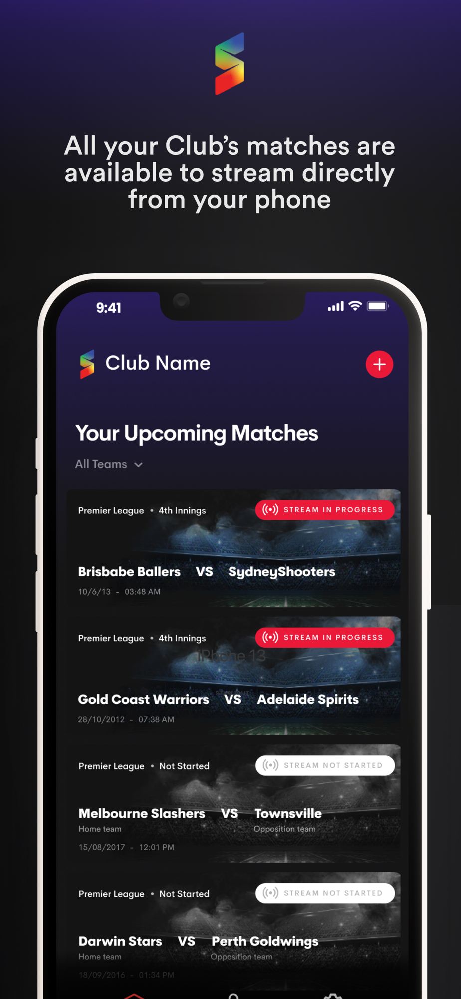 The Streamer companion mobile app is your mobile gateway to streaming all of your club’s matches directly from your own phone. Simply select the match you would like to stream, confirm its details, place your phone in a stable position pointed at the action and away you go.