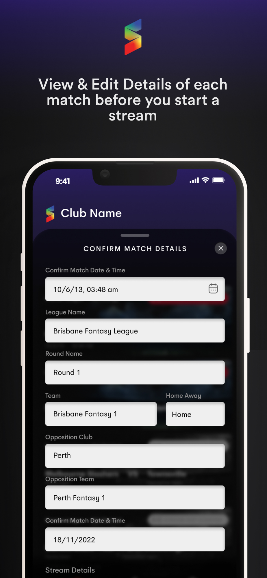 - Confirm & Edit each matches details, such as start time, round name, opposition and more