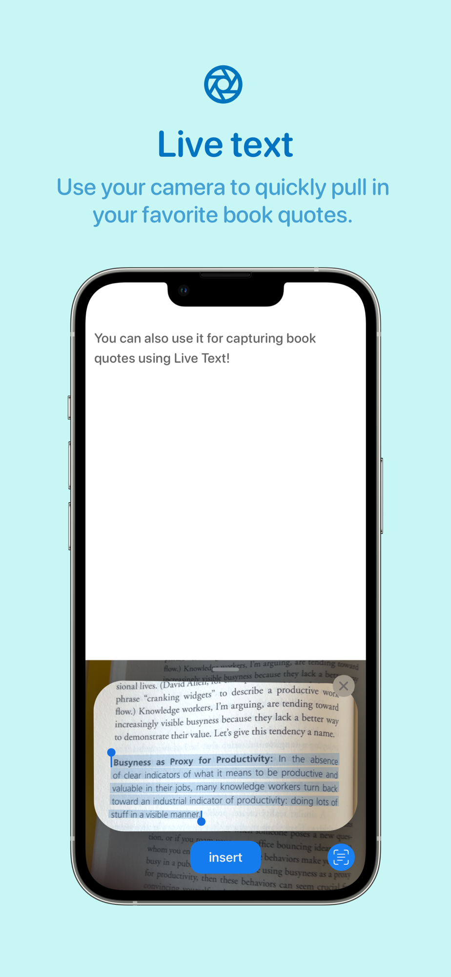There are three input modes to help you do this. Live Text, Dictation, and Keyboard.