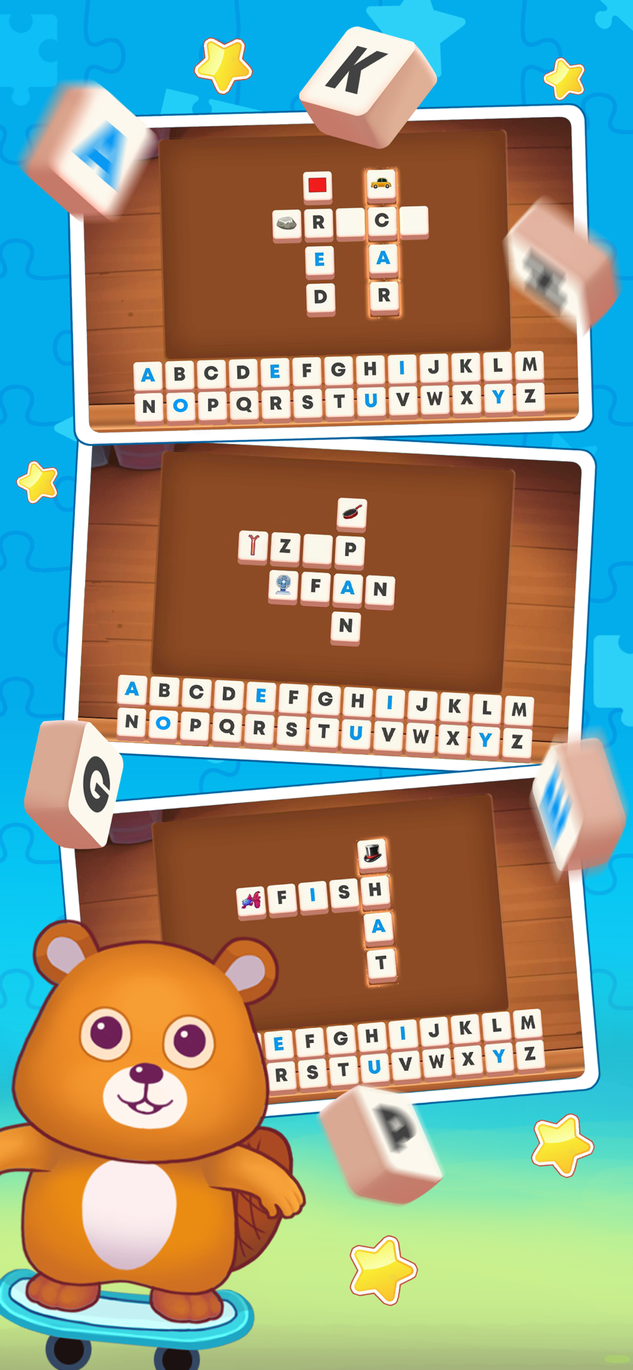Word puzzles can be challenging for young kids. In Kidszle, we offer a much simpler version of crosswords for them to begin comprehending and finding ways to solve them.