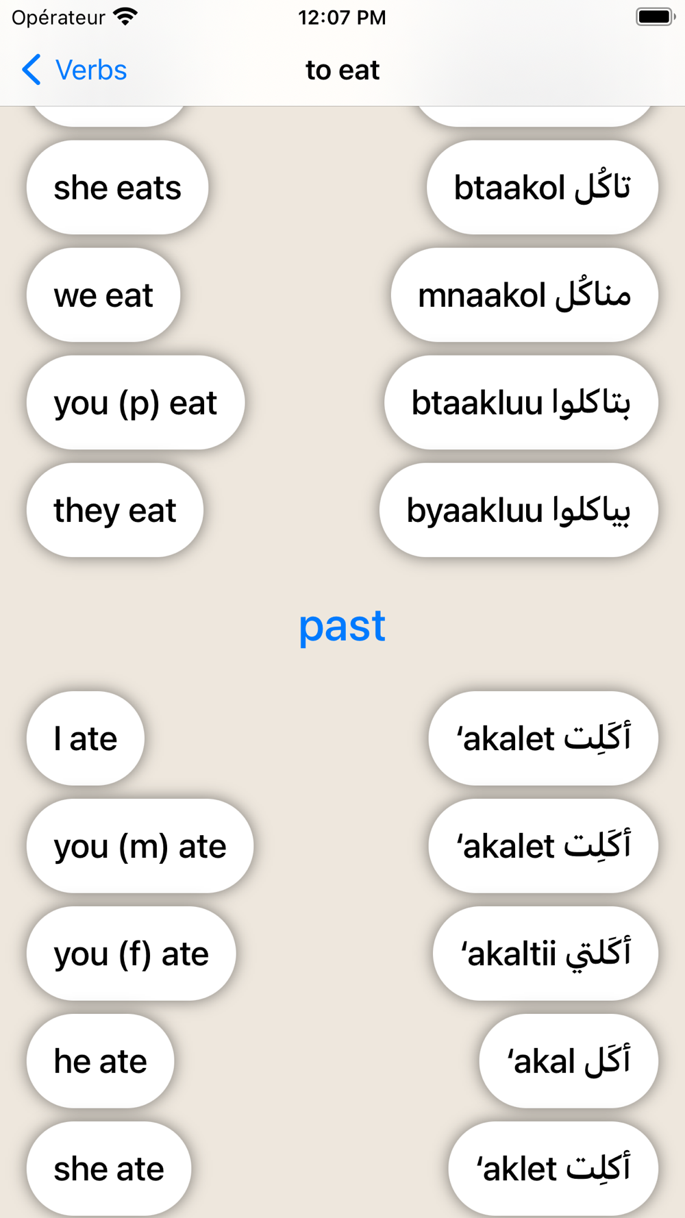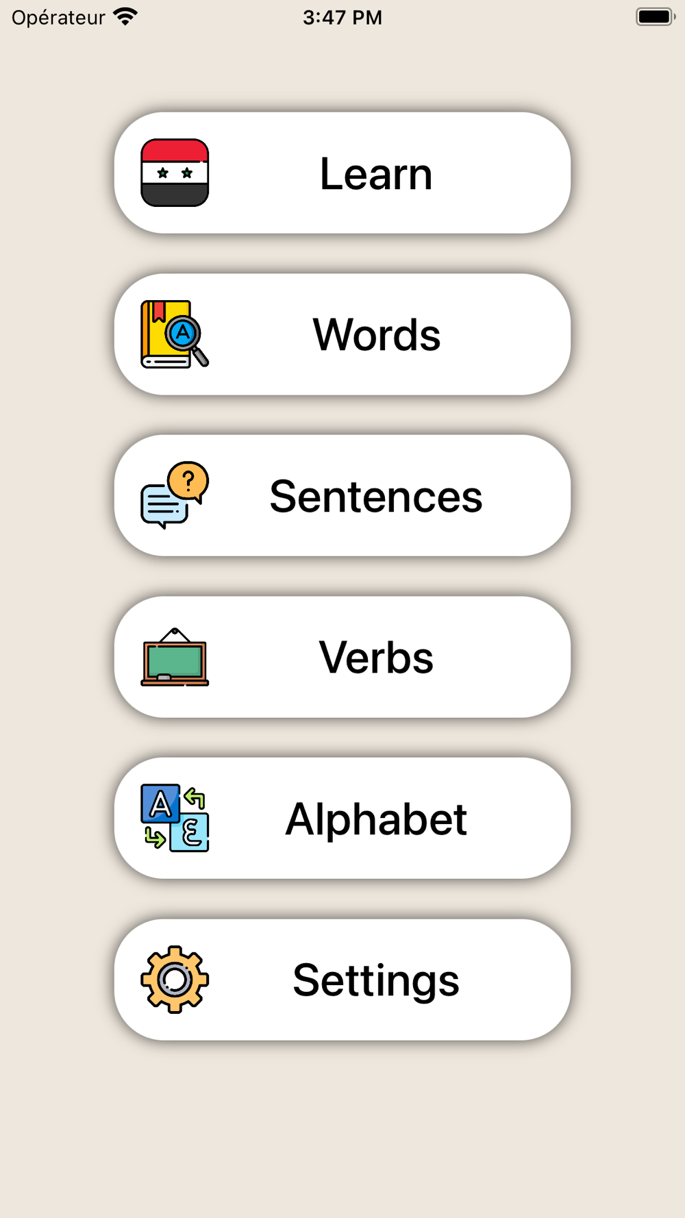 Marhaba teaches you words and sentences in Syrian (-Lebanese) dialectal Arabic. The principle of the app is simple: