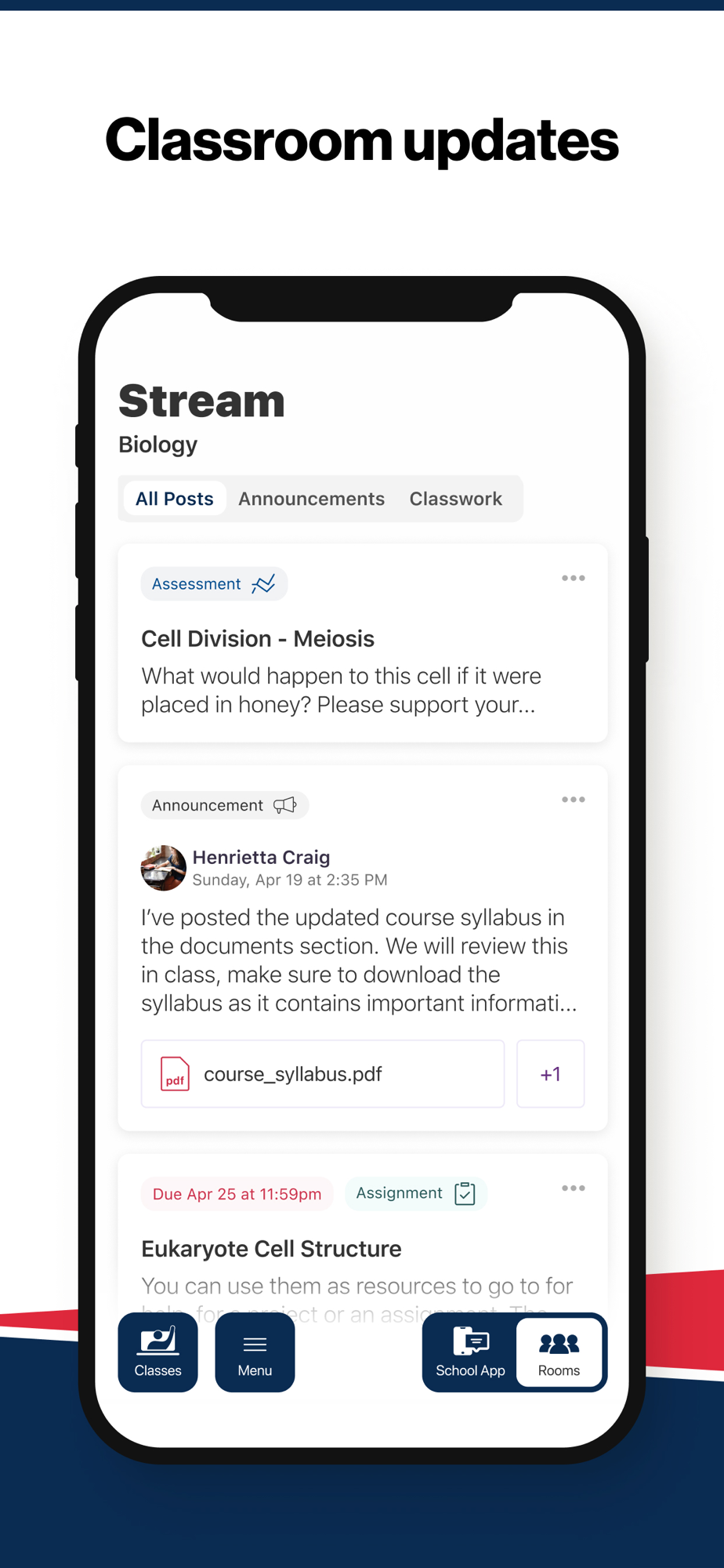 Select your student’s organization within the app and make sure you never miss a message.
