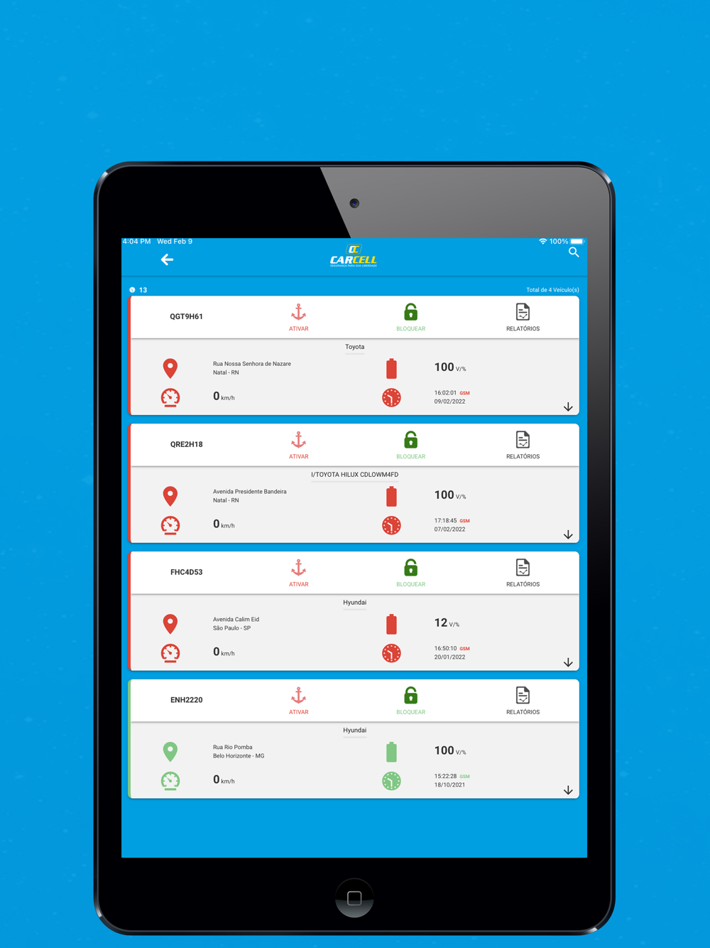 O Aplicativo Carcell Monitoramento foi criado para dar mobilidade ao rastreamento veicular, mostrando os veículos rastreados pelo sistema.