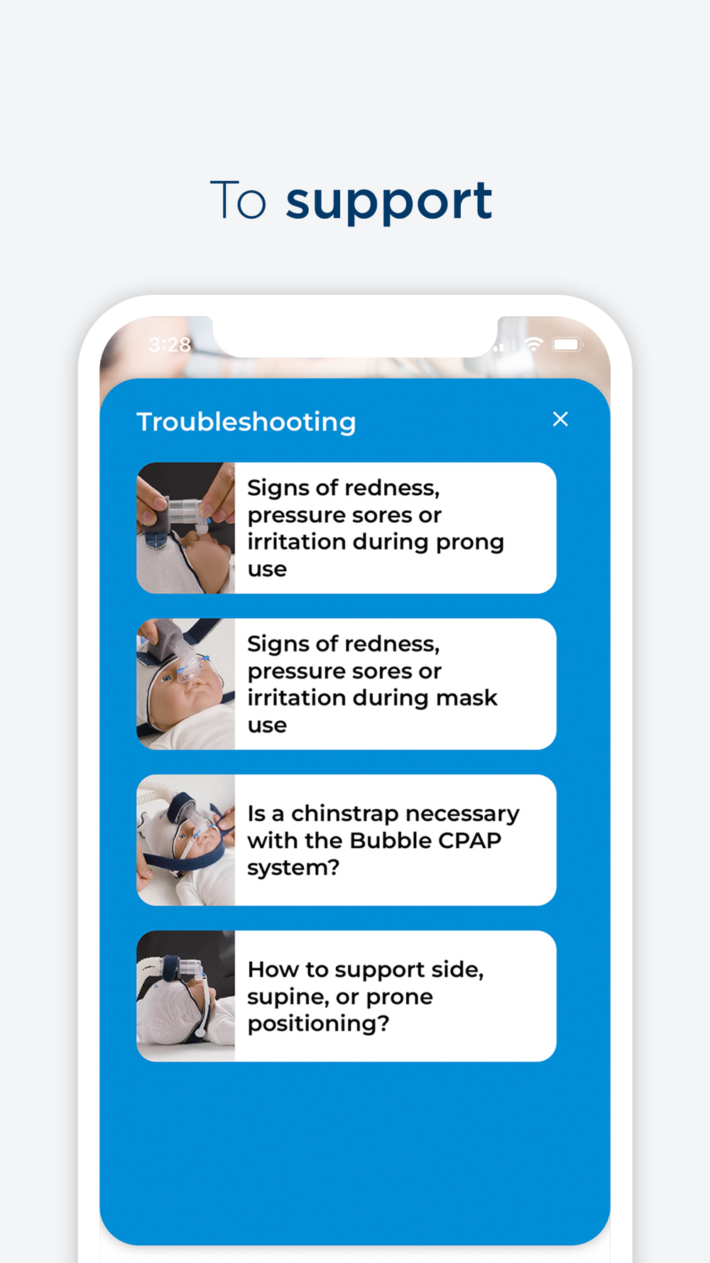 The F&P Neonatal App places support and troubleshooting advice within easy reach. It optimizes your time and ability to use our interface, so you are free to continue your invaluable work with our most vulnerable of patients.