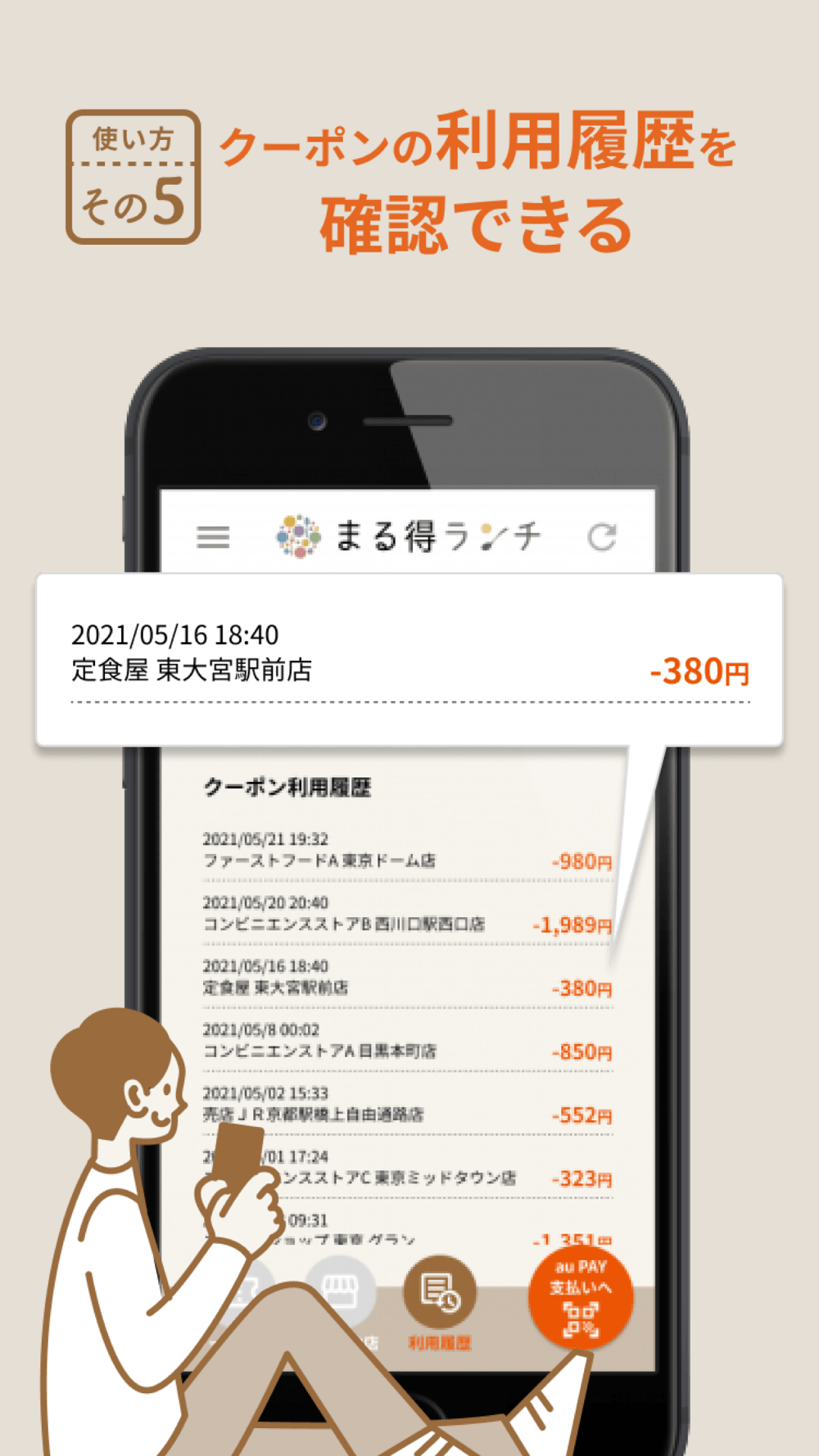 まる得ランチとは、QRコード決済「au PAY」を使った福利厚生のサービスです。