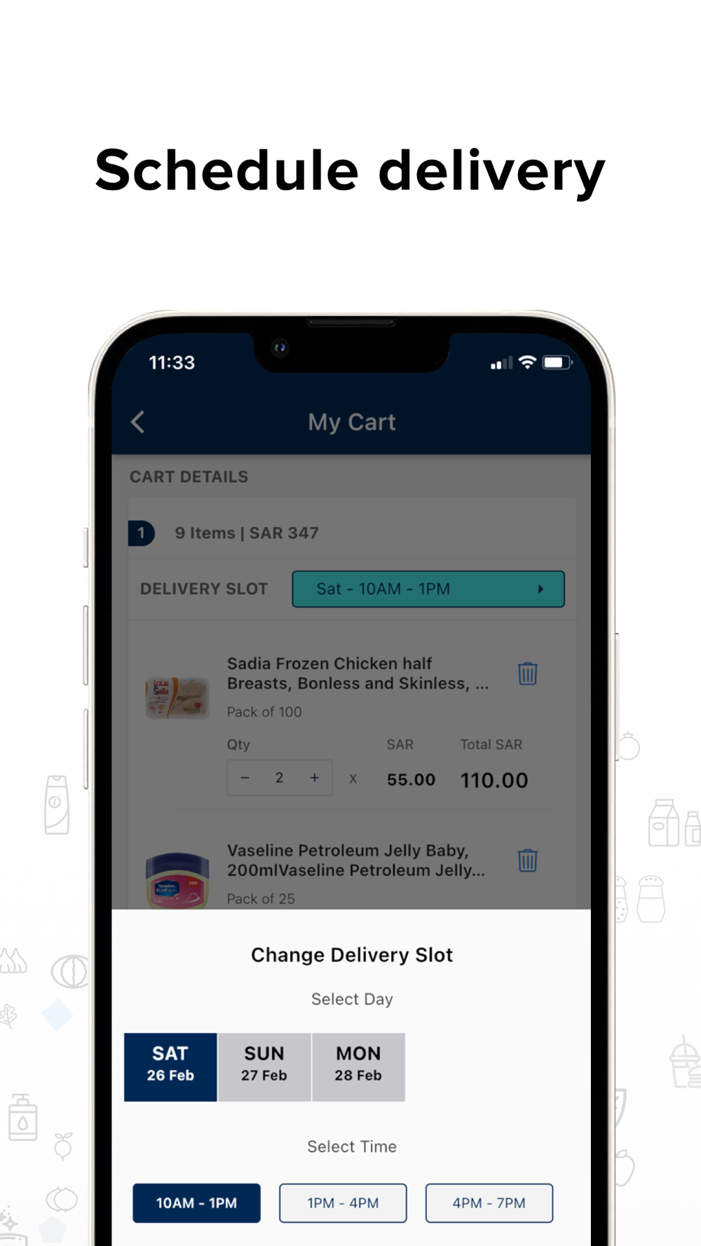 Through the Sanad app, Grocery stores, restaurants, café shops, hotels, Function Halls, Schools, offices, or any other kind of establishment or individuals can order bulk FMCG/Grocery items.
