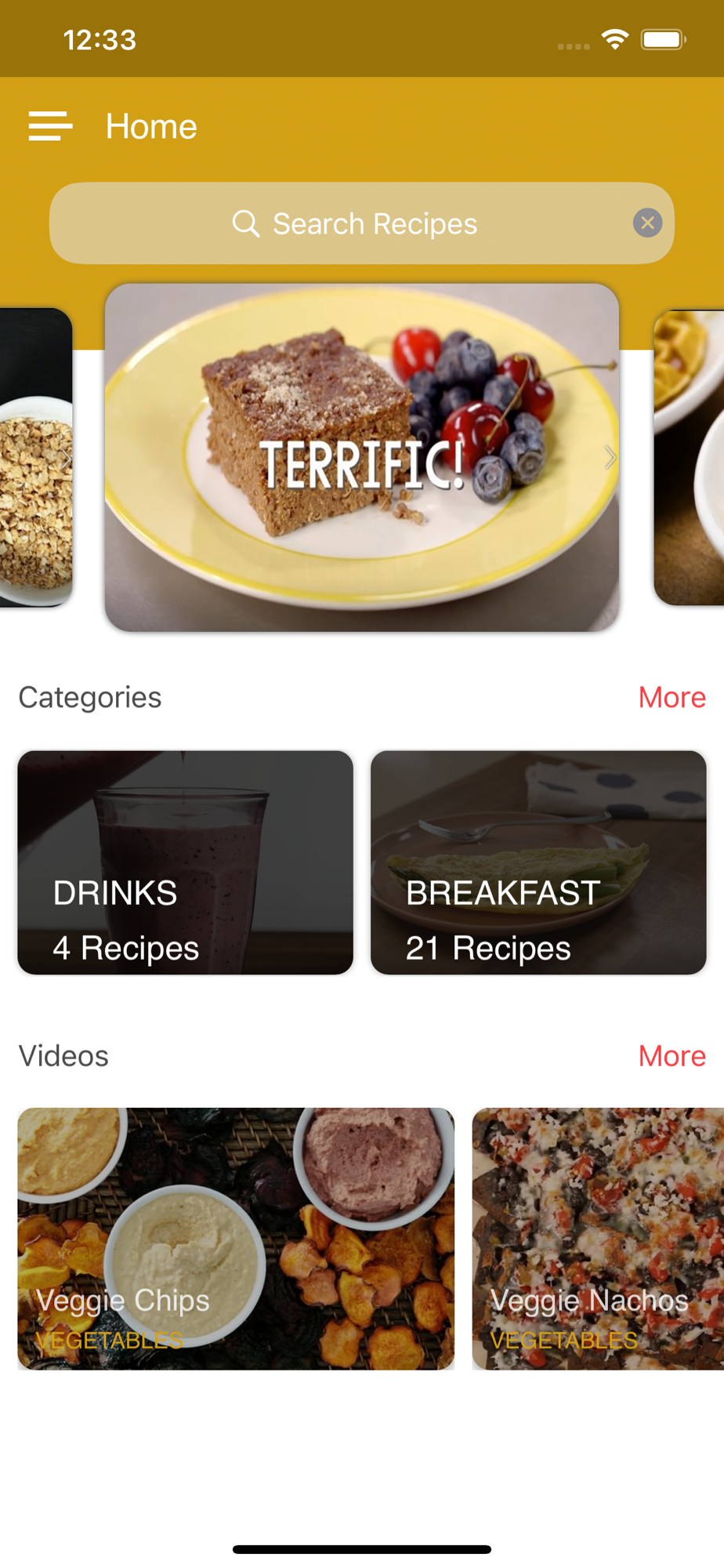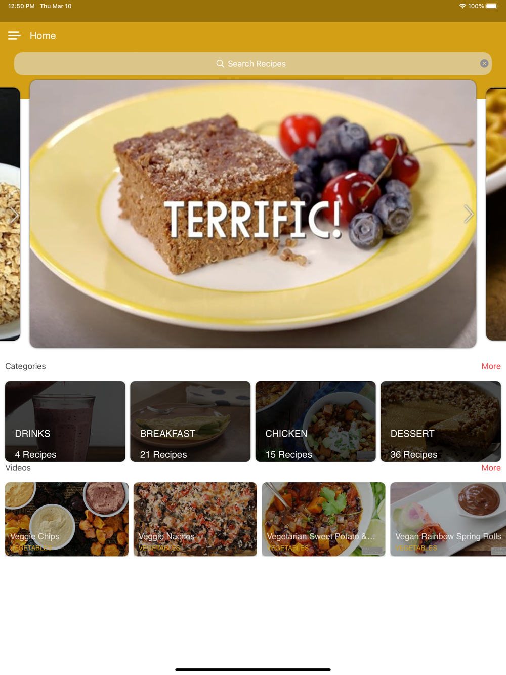 مئات من الوصفات الشهية واللذيذة بمقاطع الفيديو والشرح الوافي باللغة الانجليزية والعربية لترضي مختلف الأذواق وفي شتى الأنواع مثل وصفات الطبخ الخاصة باللحوم ، الحلويات ، السلطة والخضروات وغيرها الكثير، يتم تجديدها دورياً.
