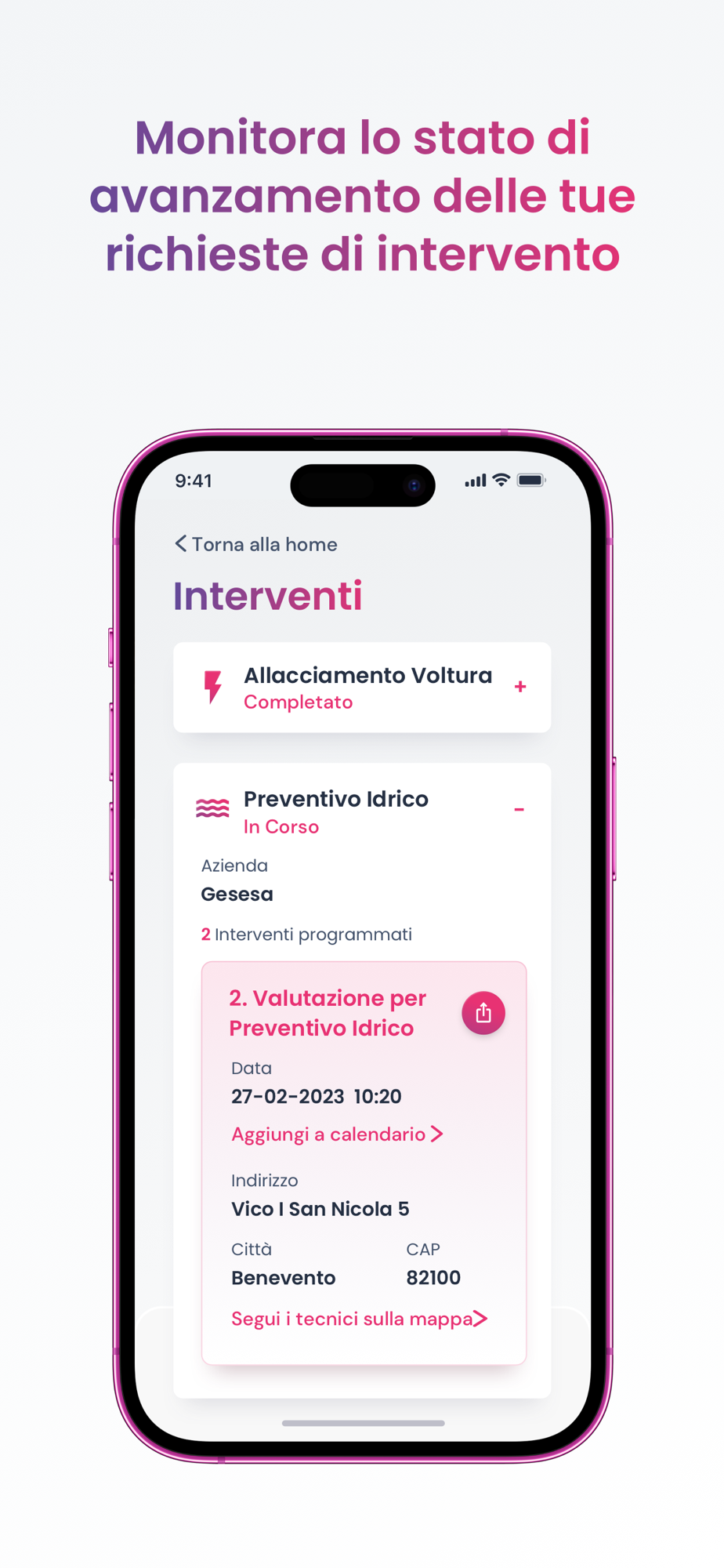 Follow and monitor your intervention, checking the arrival time of the technician at your home.