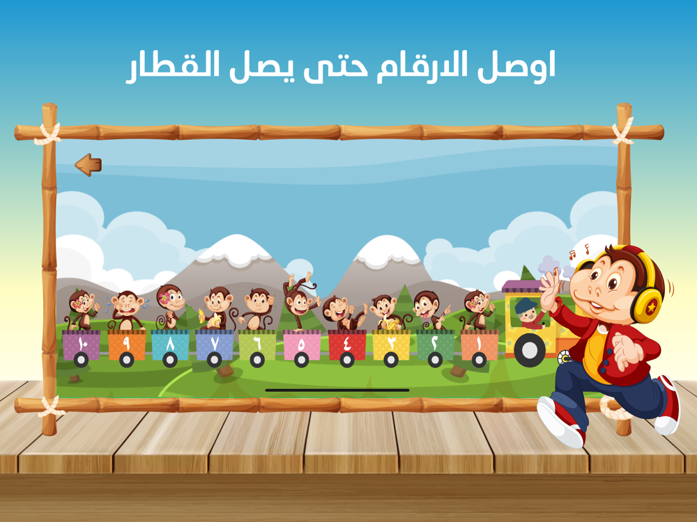 يتعلم الطفل بهذه المرحلة ترتيب الأرقام التي تظهر في قاطرات أعلى الشاشة من الأصغر للأكبر.