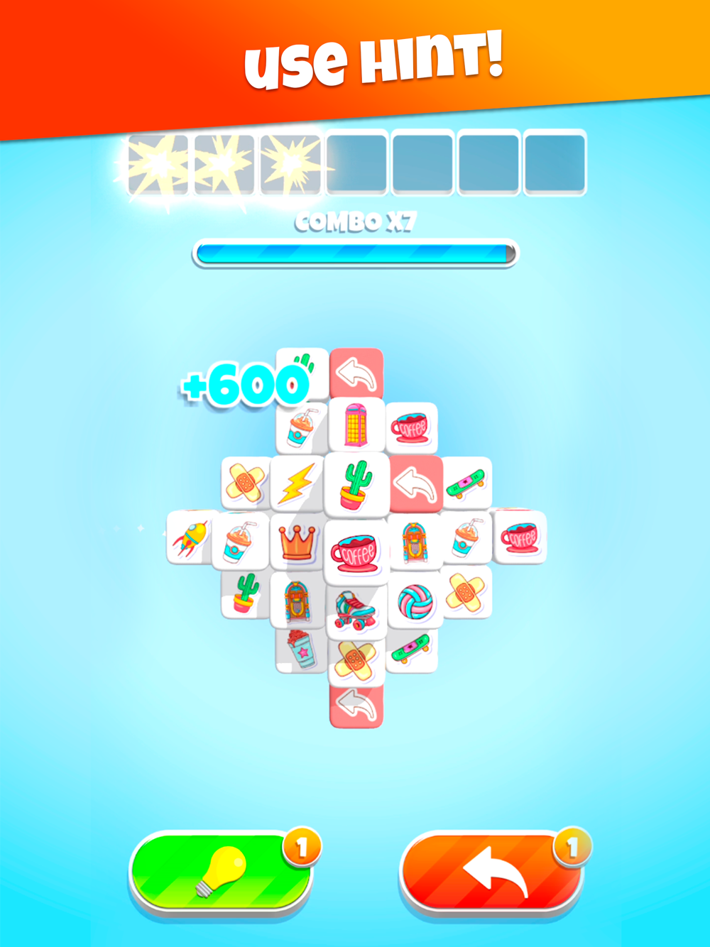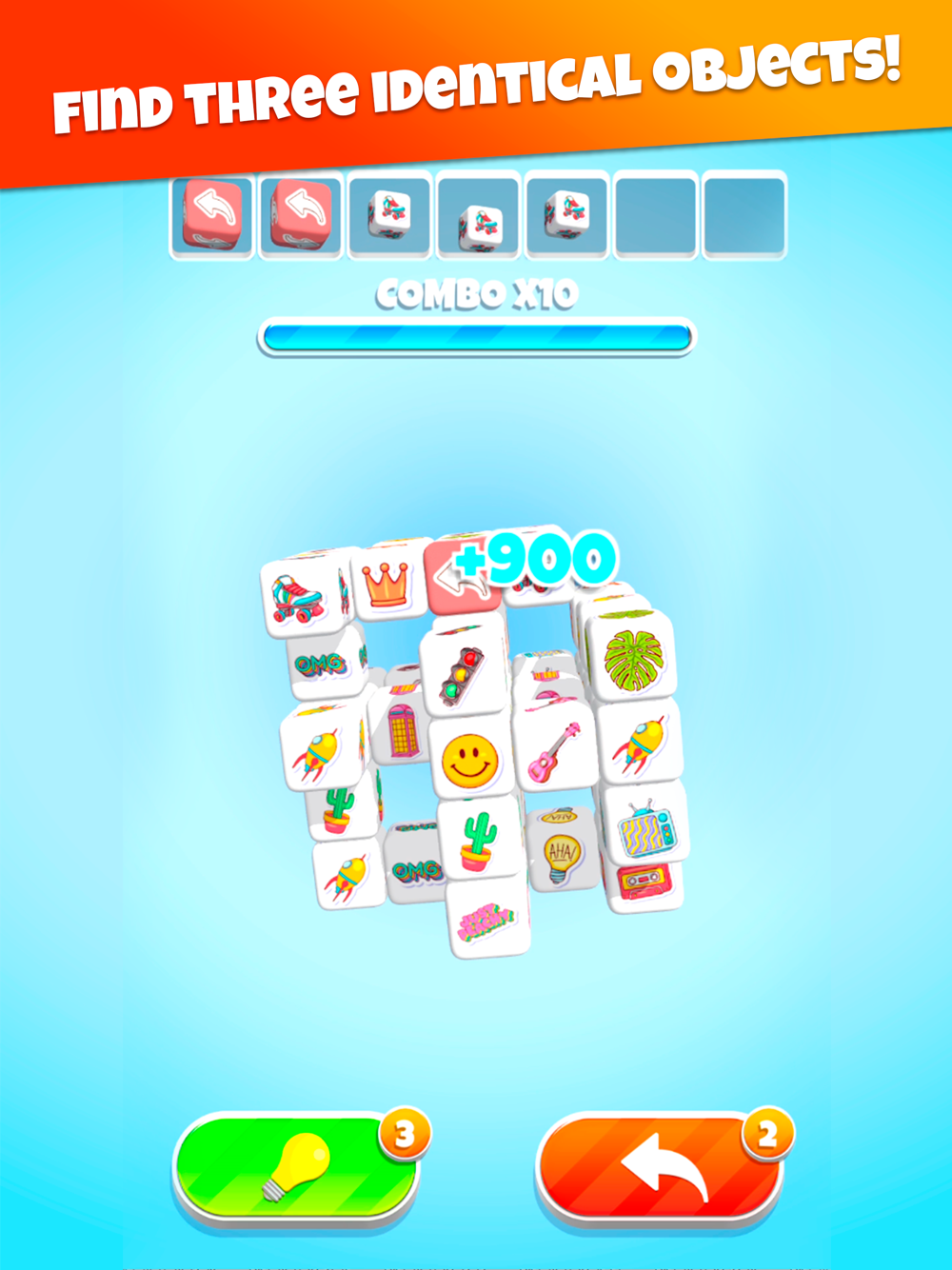 Find identical elements and add them to the collection strip, each combination of three elements gives points. Get to the top figures and get the maximum number of points.