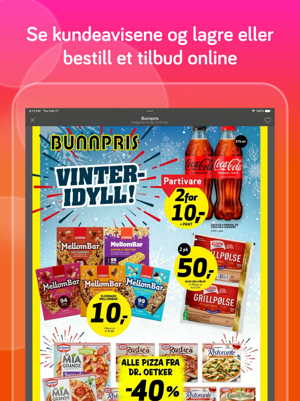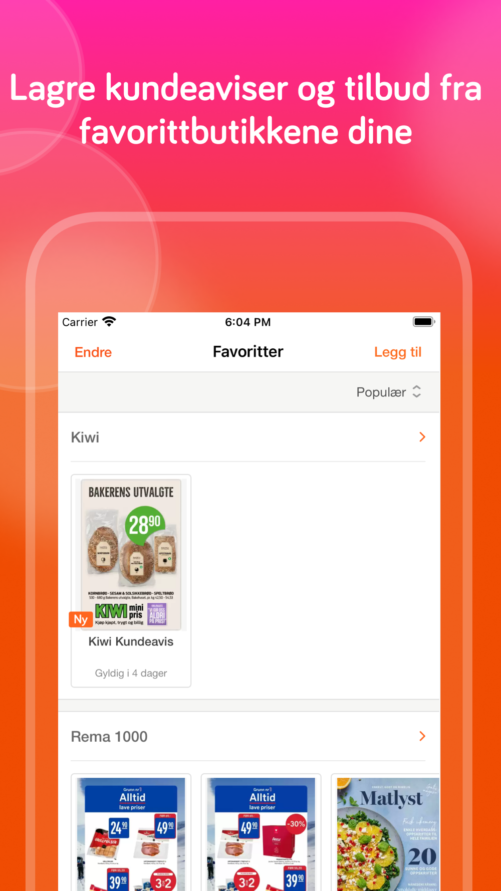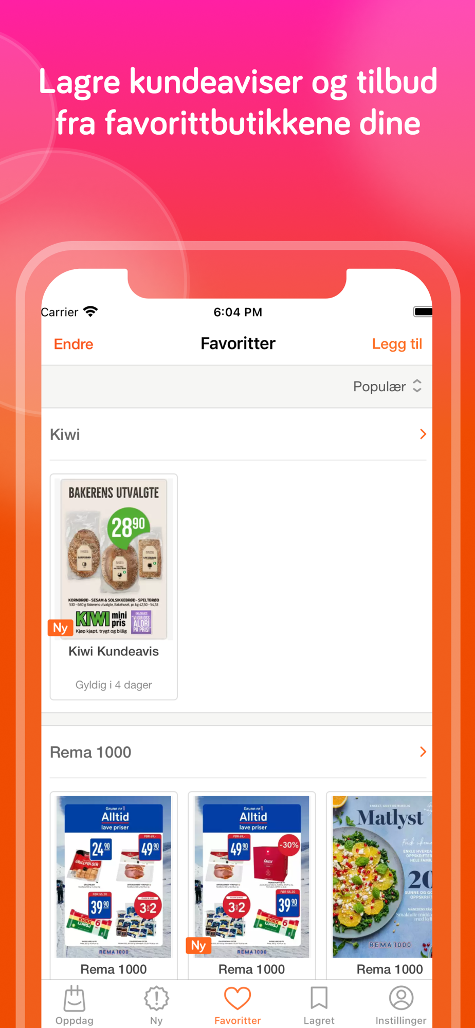 Vår app fra Kundeavisogtilbud.no viser deg alle gjeldende brosjyrer fra både store og små butikker i Norge. Ikke bare alle supermarkeder og byggevarebutikker, men også av el-butikker, motebutikker, leketøysbutikker, databutikker, apotek og mye mer. Vi har til og med listet opp de fleste lokale butikkene for deg! Hvis du vil lagre en spesifikk butikk som ditt favoritt, klikker du bare på hjertet for å legge den til din personlige liste. På denne måten vil du alltid være den første som får vite om tilbud fra favorittbutikkene dine og samtidig samle kundeavisene som du er interessert i.