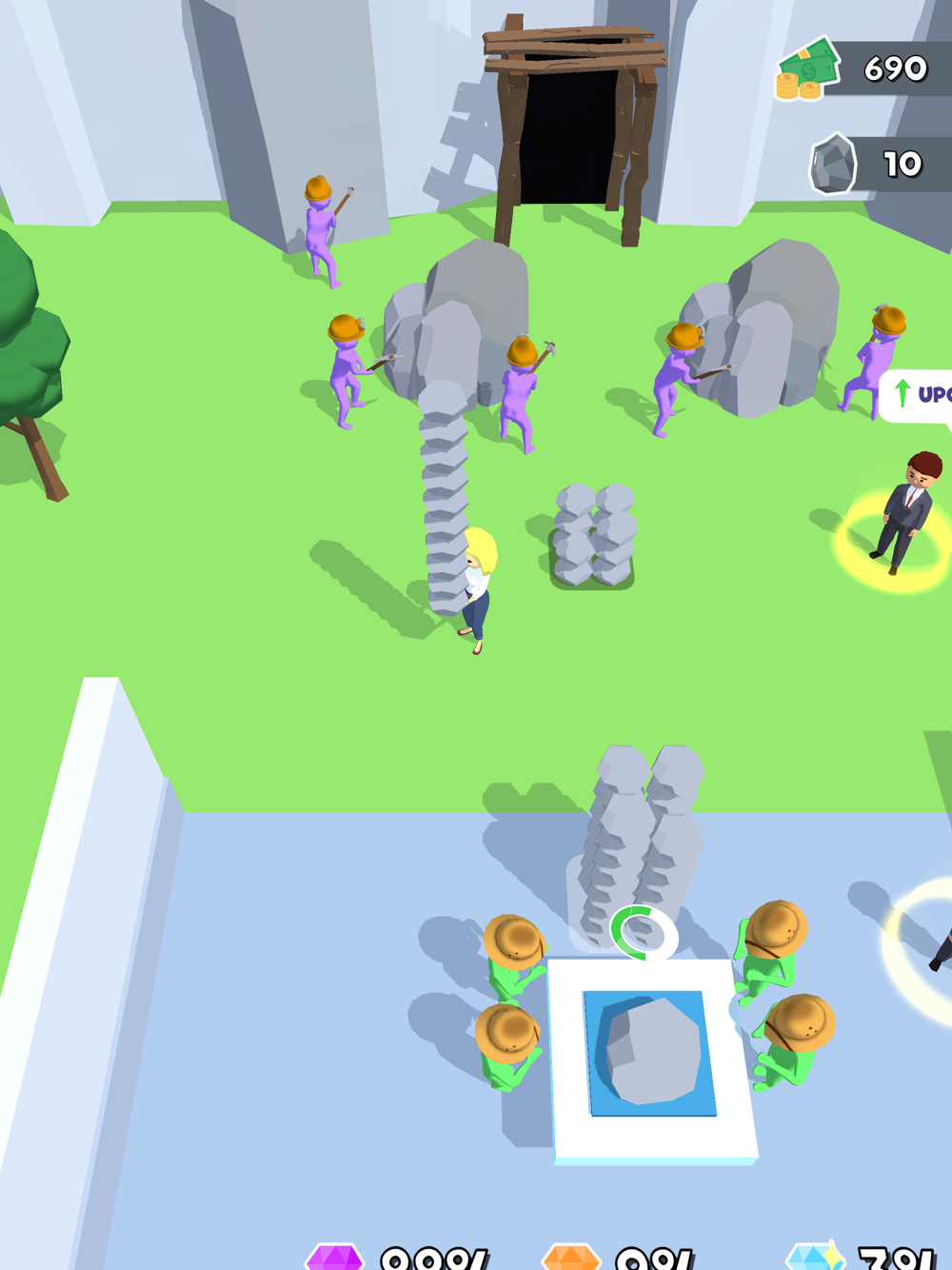 Manage your miners, mine gems, and buy and sell the gems you get in your store!