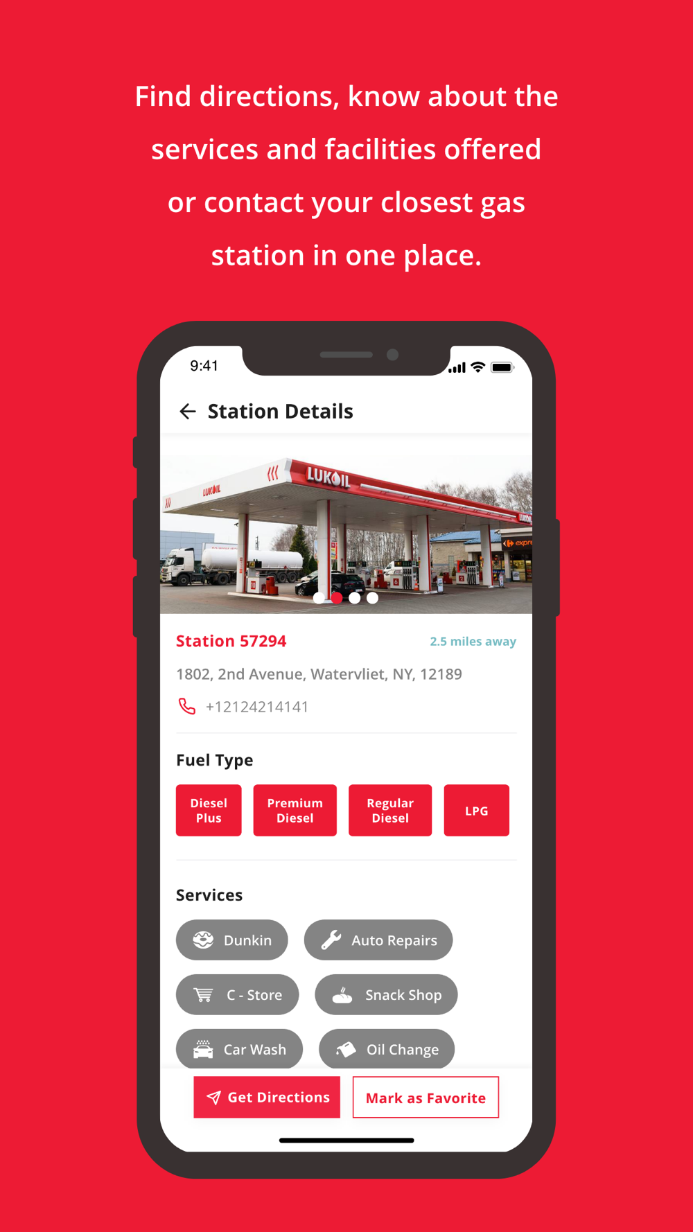 The LUKOIL North America mobile application provides a map or list view of LUKOIL gas stations with the ability to get directions along with a list of products, services, and station details. In addition users are provided access to functions such as tenders, business opportunities, real estate sales, apply for a fleet card, and more.