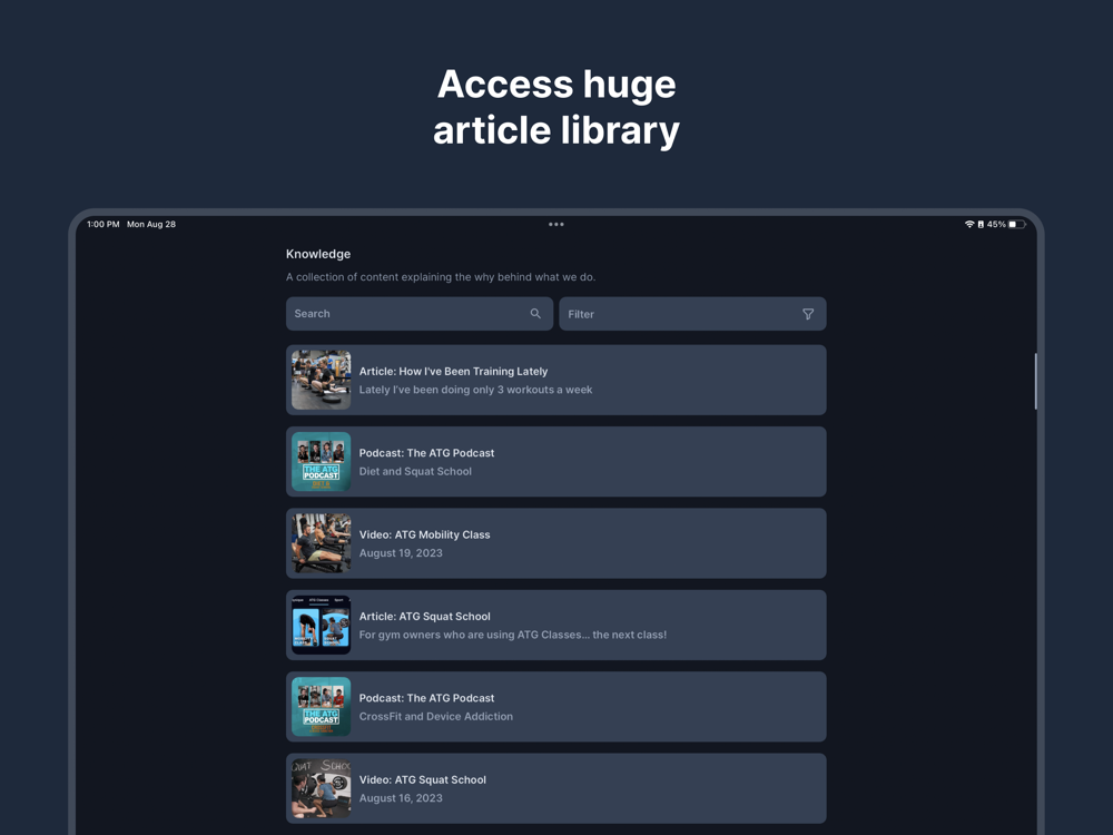 - Full library of ever expanding articles so you can understand the “why” behind ATG exercises.