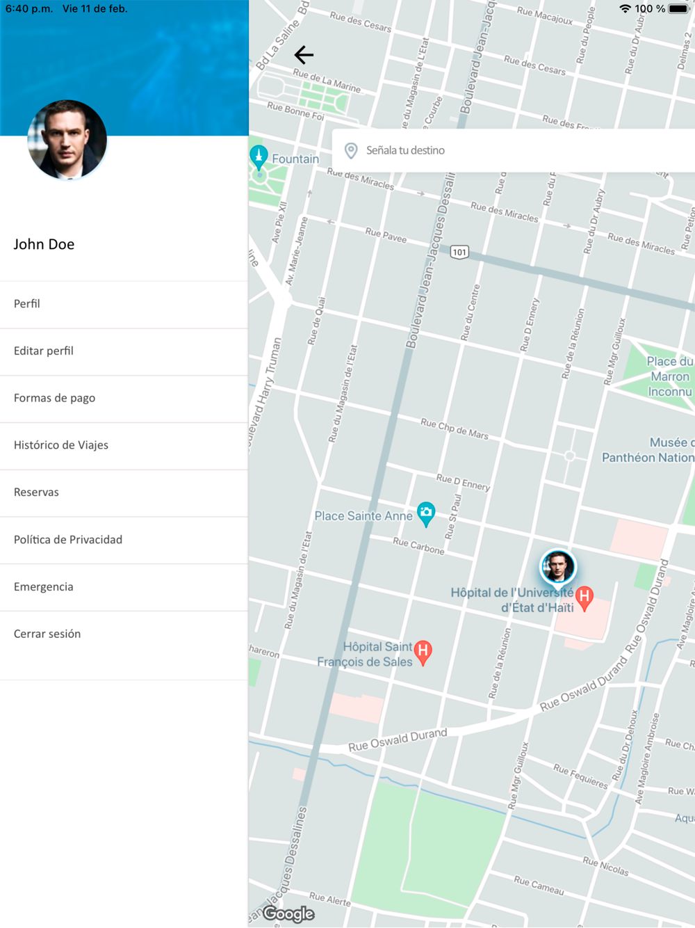 - A su vez se puede visualizar en ambos usuarios conductor y pasajero la ubicación en el mapa en el recorrido mientras el conductor se va moviendo.