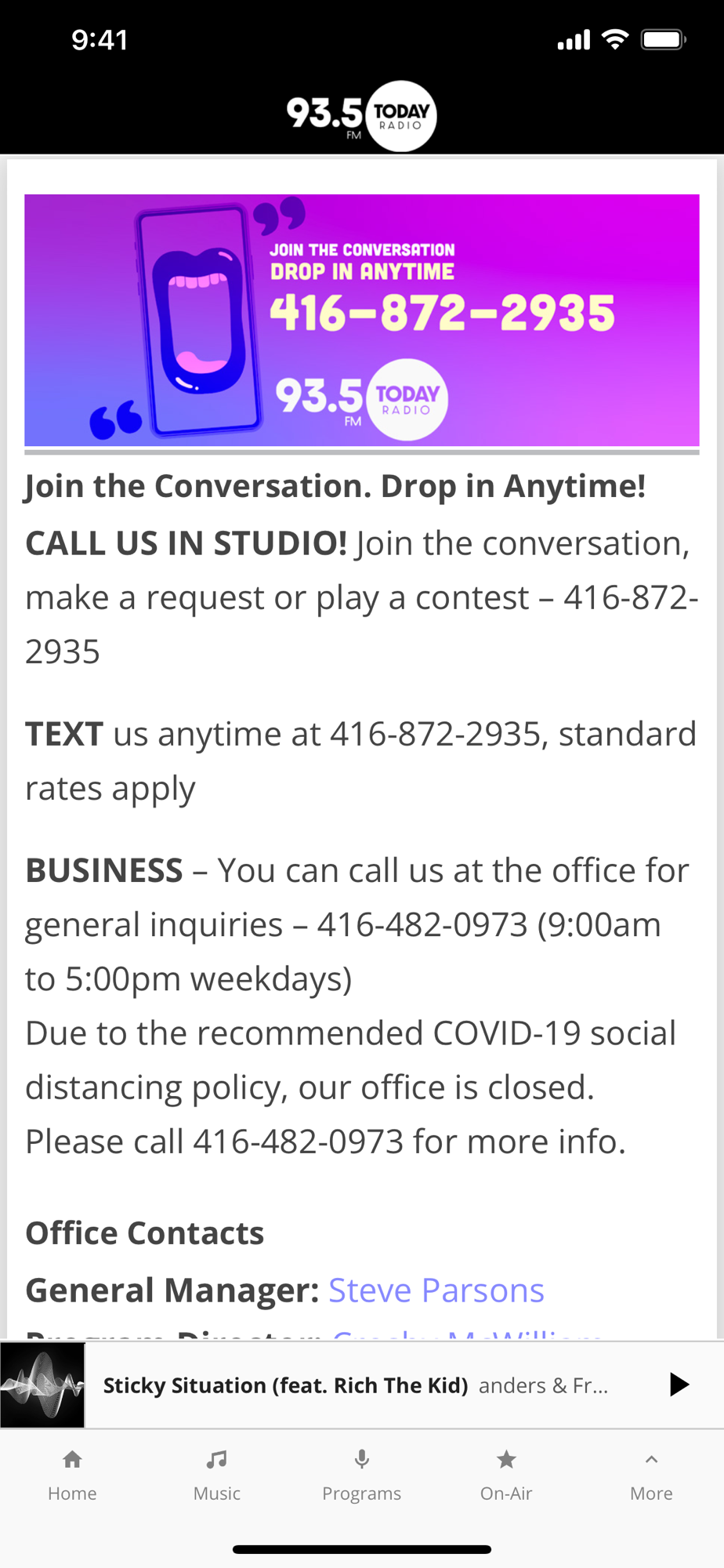 93.5 Today Radio is a station driven by connection, community and fun conversation accompanied by the widest music playlist in Toronto radio!