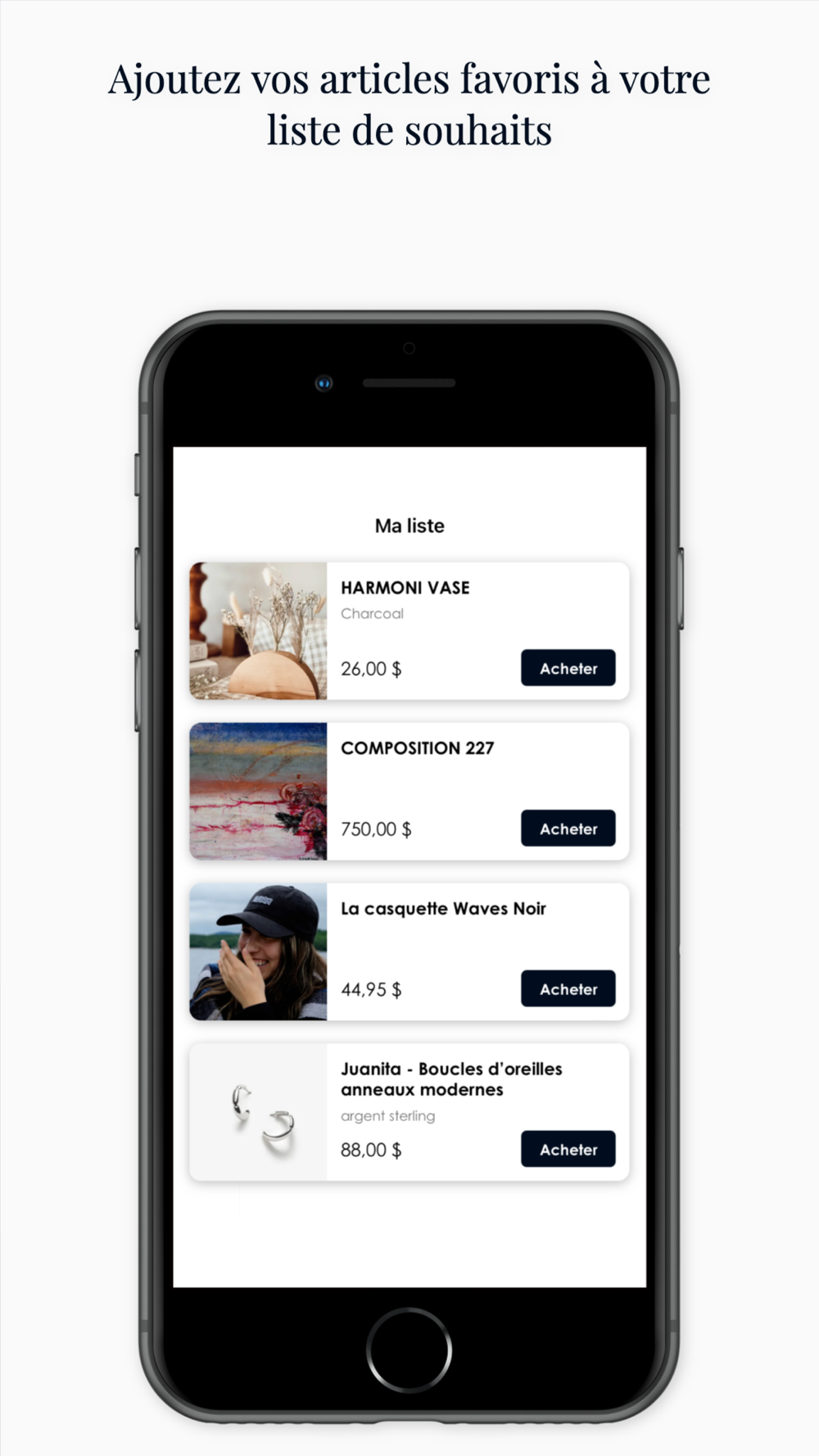 - Ajoutez des produits à votre liste de souhaits pour de prochains achats ou cadeaux.