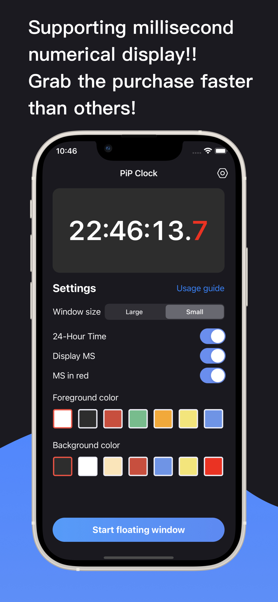 A digital clock tool supporting stopwatch and countdown, which can be suspended on any app and mobile desktop! The background format and font of floating window can be customized.