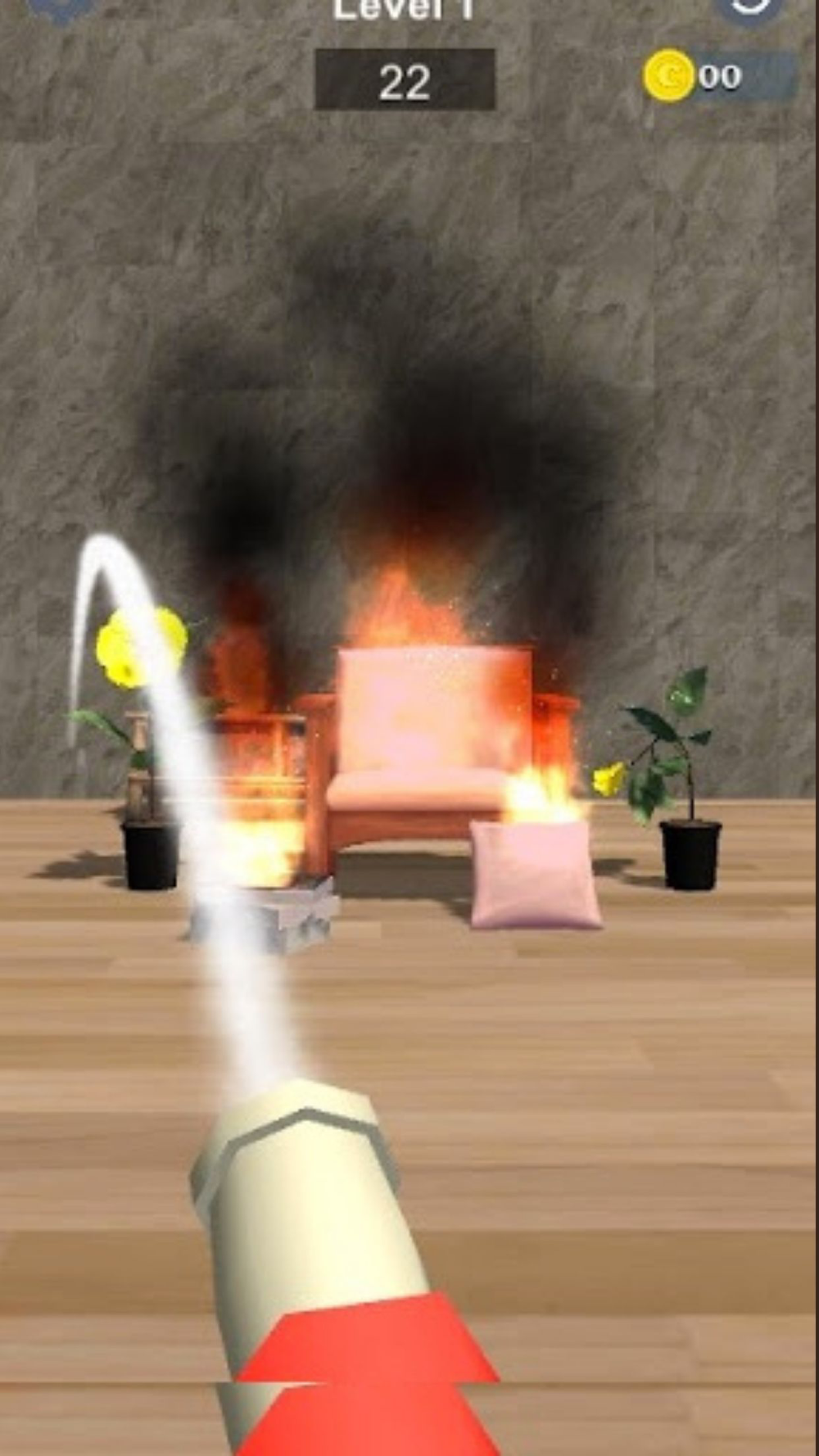 You are a firefighter. You have to get to the scene of a fire and put out the fire by aiming well.