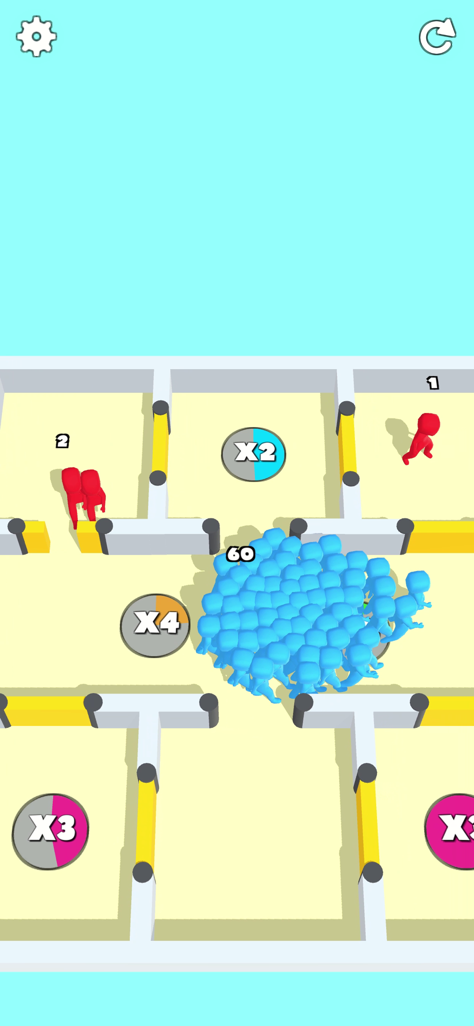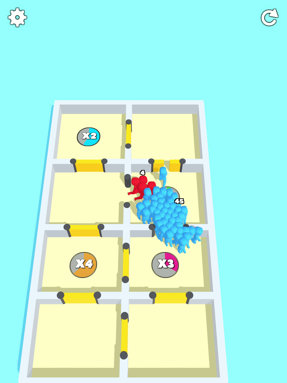Keep on collecting the multipliers and grow into large crowds to easily kill all enemies.