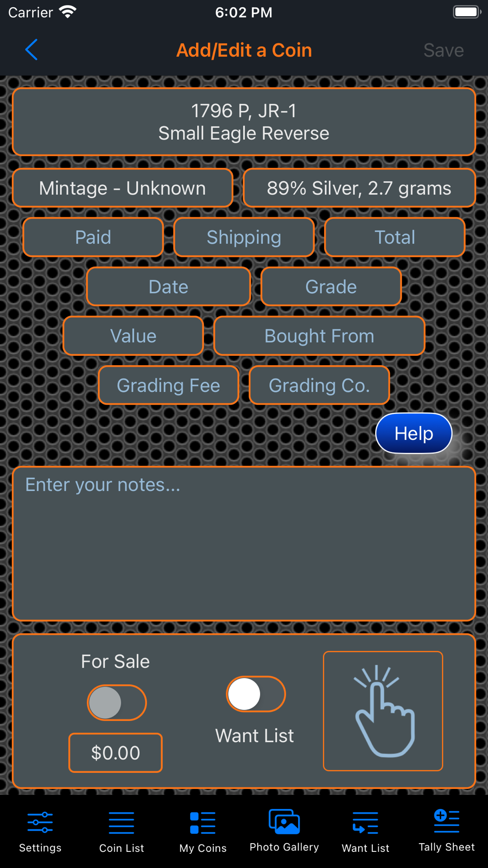 Please keep in mind that the app is intended for organizing and tracking your coin collection. Therefore it does not contain information regarding how to grade coins.