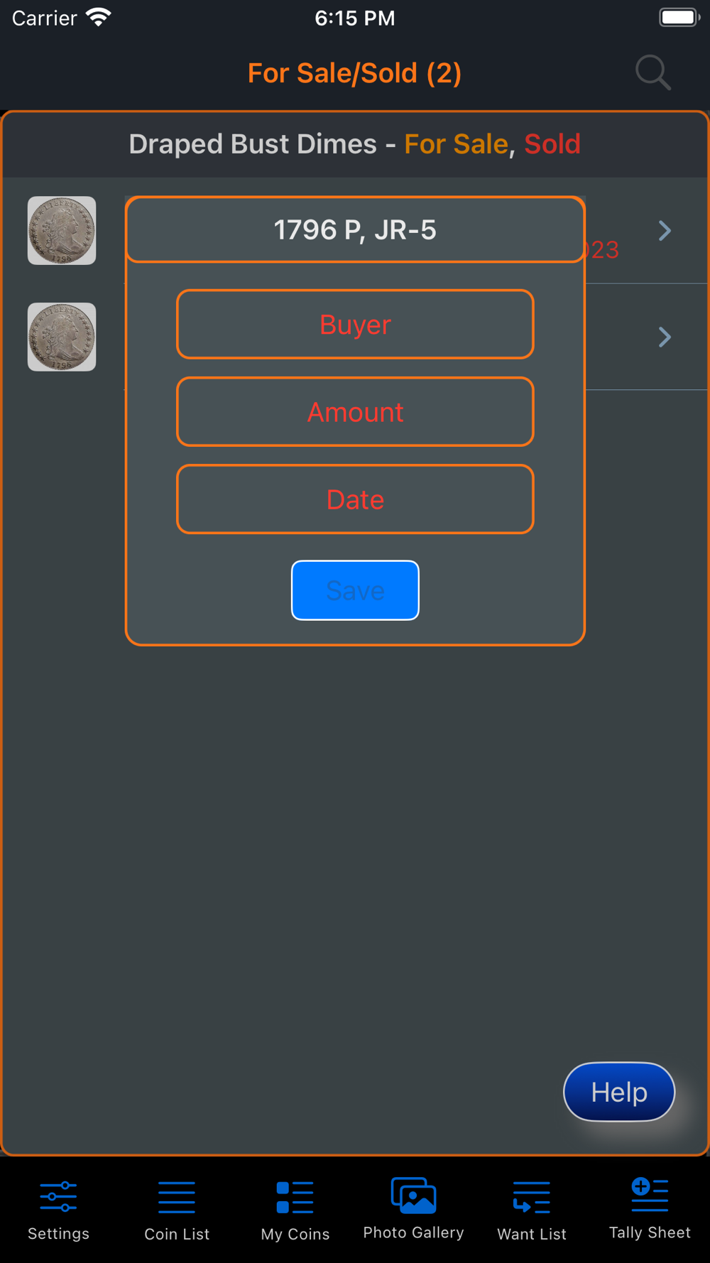 This app was developed for the collectors of Draped Bust Dimes.