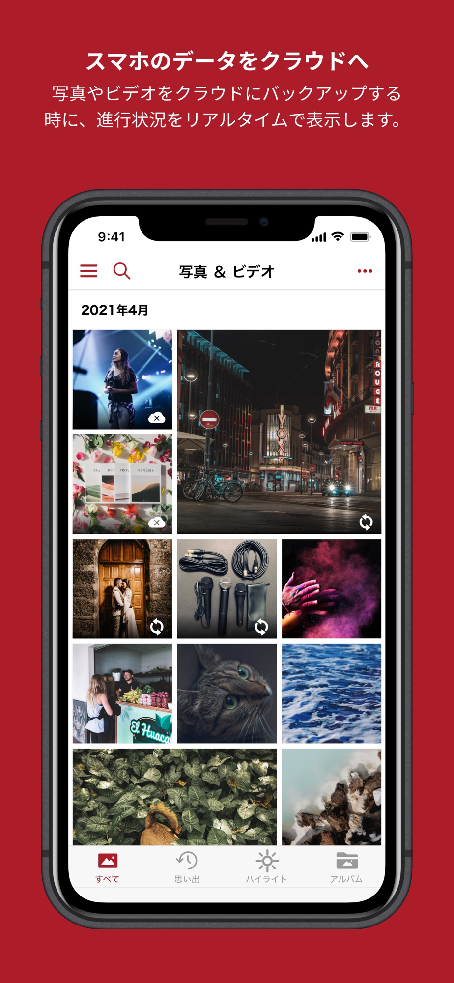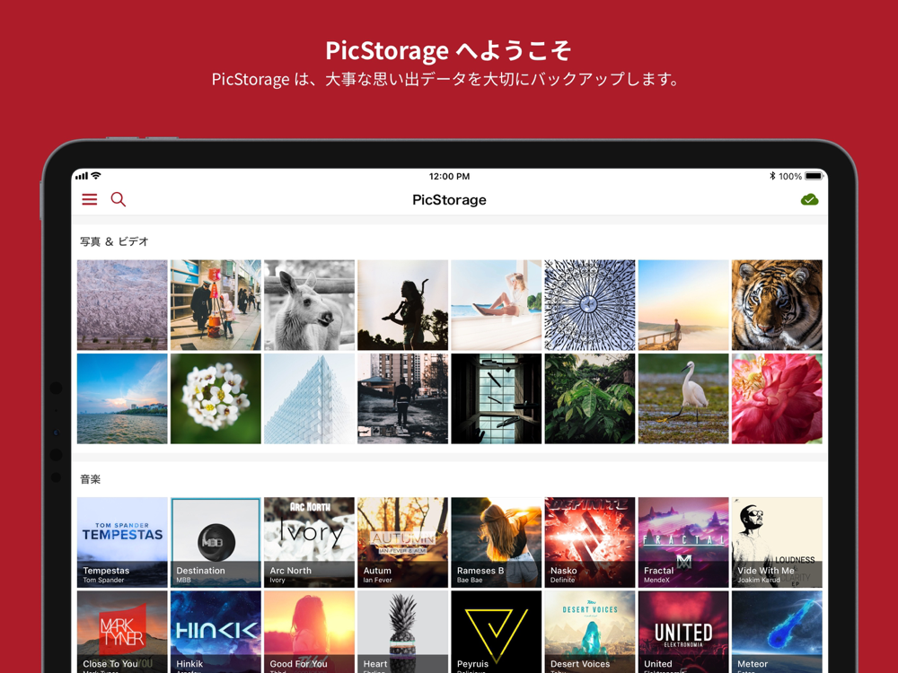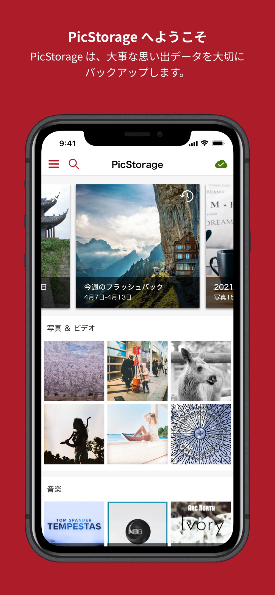 お客様の大事な思い出の写真や動画のデータを安全にクラウド上で保管することができます。