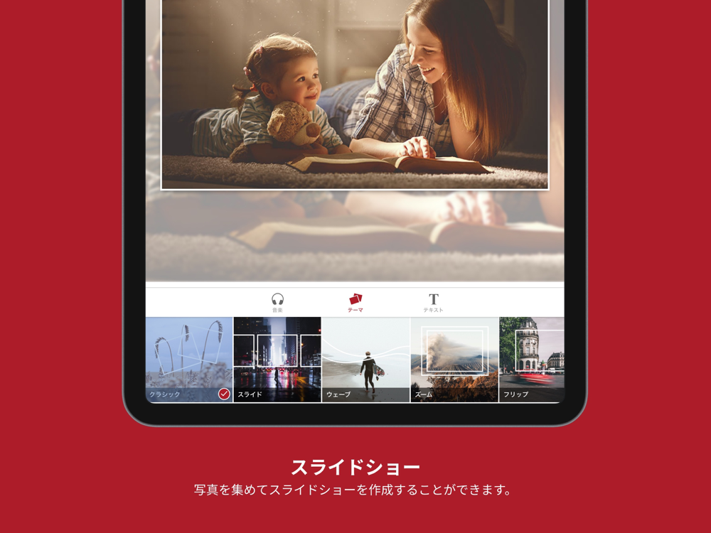 ・お気に入りの写真を集めて、オリジナルのスライドショーを作成できます。