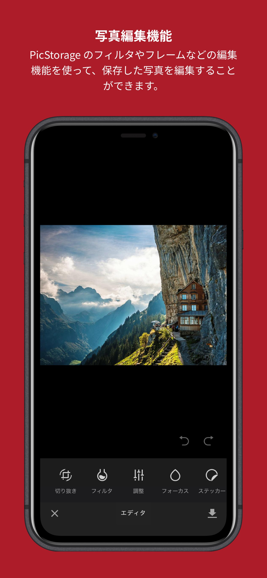 ・保存した写真を編集機能を使って、編集することが可能です。