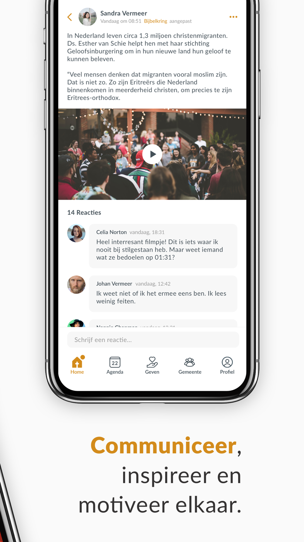 Als gemeente willen wij betrokken zijn met elkaar, efficiënt de organisatie van de kerk onderhouden, elkaar ondersteunen en nog veel meer. Onze eigen mobiele app helpt ons hierbij!