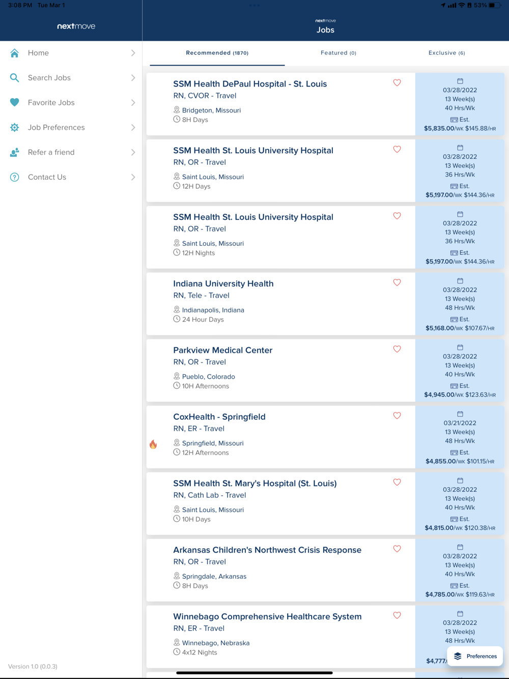 Use the Next Move app to search for the best healthcare staffing travel assignments across the United States. Apply for jobs directly in the app, upload your credentials, accept assignments, and upload your timecards.