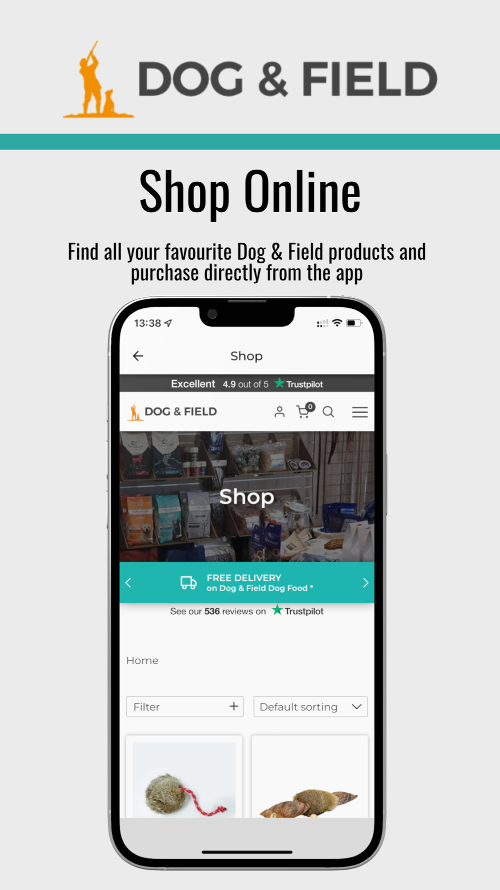 Shop Online - With easy access to our online shop through the app you can find all your Dog & Field favourites even more easily!