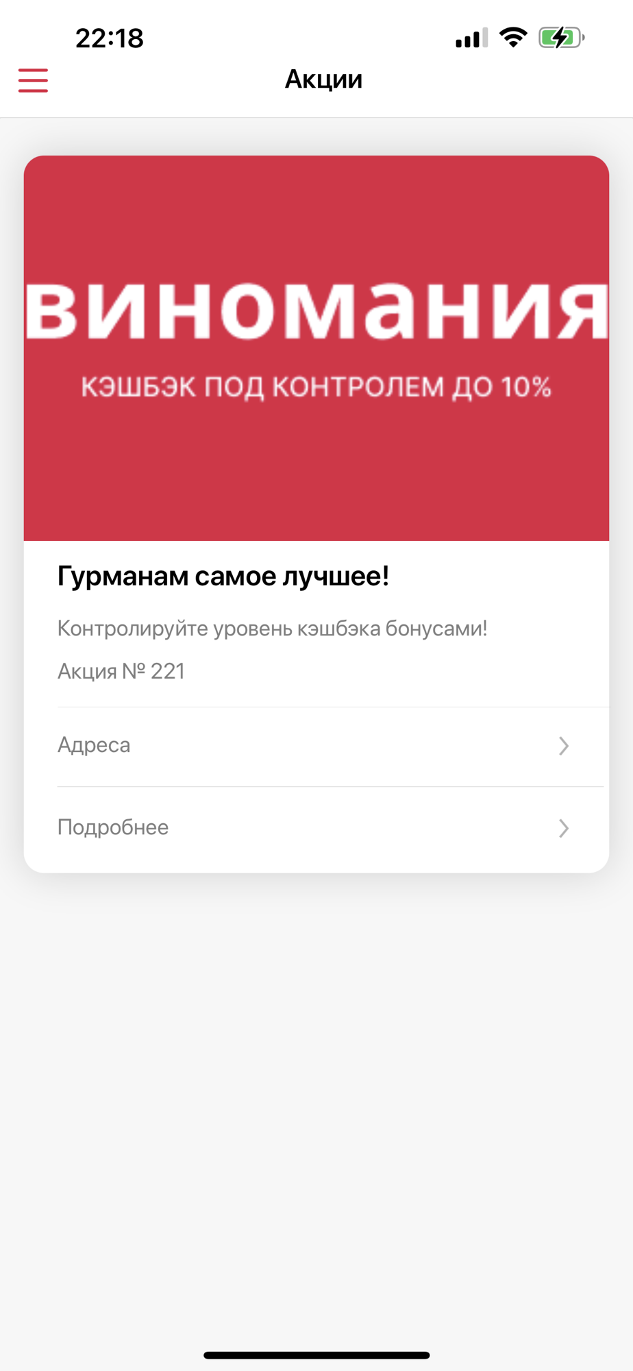 Реализовано брендом “Торговый Дом Виномания”, специально для своих почитателей и клиентов, современного сервиса обслуживания, и конечно же любителей бонусов и скидок в нужное время, в нужном месте!