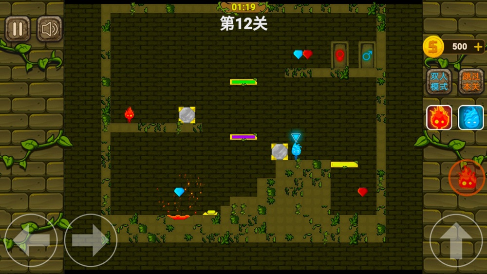 -注意保护人物,火焰人必须避开水,冰霜人则不能碰到火