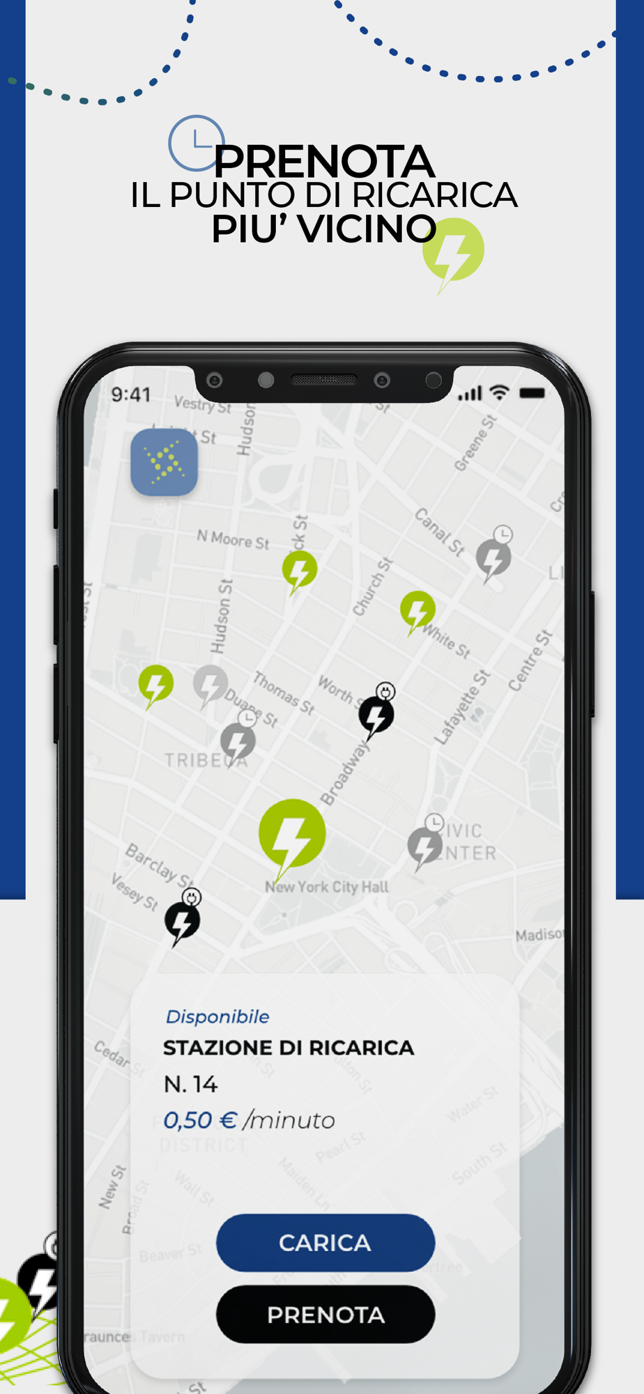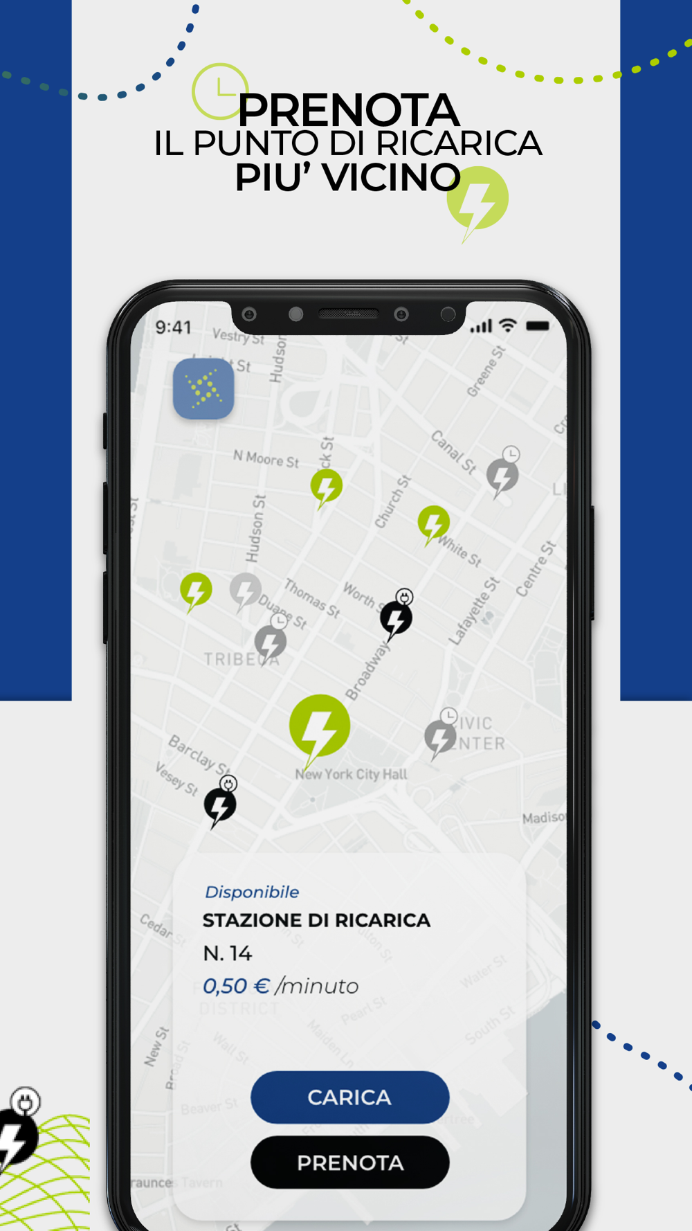Sarà, inoltre, possibile prenotare la propria colonnina con largo anticipo tramite un semplice click che ti permetterà di riservare la postazione per il tempo di ricarica necessario. Dopo aver effettuato la prenotazione, l’applicazione fornirà come conferma di acquisto della postazione di