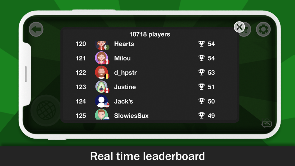 - play online with real players and see your rank in the leaderboard