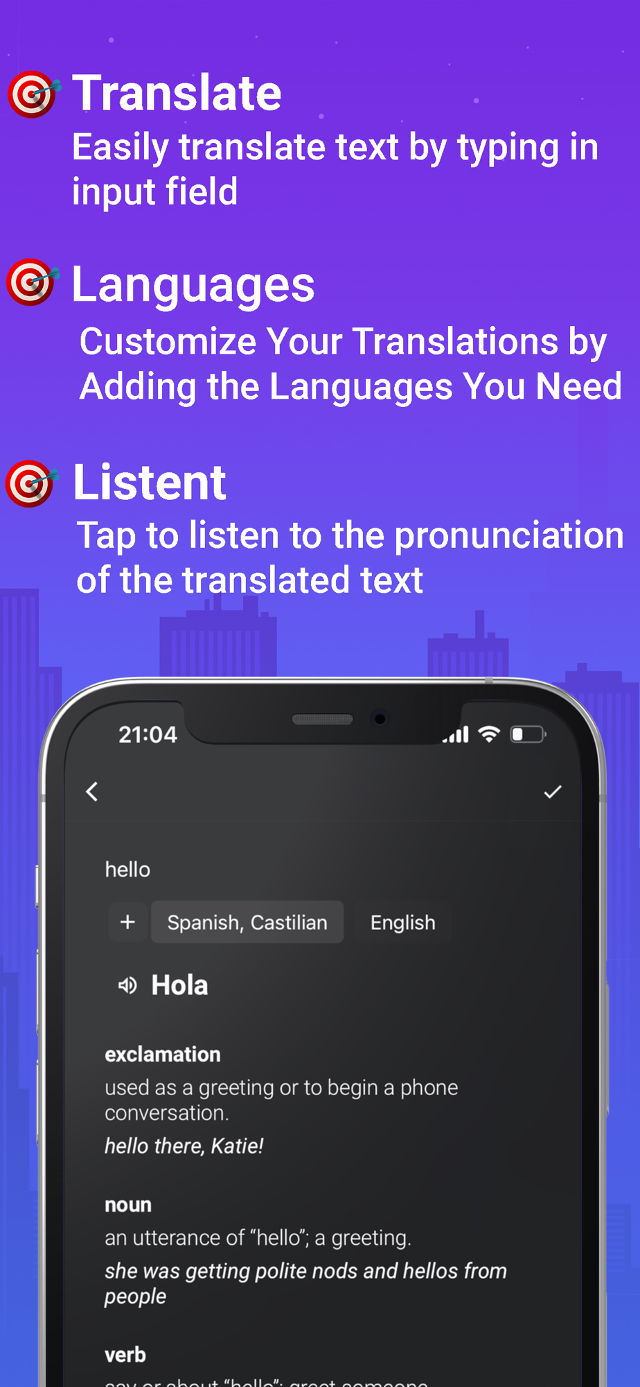 - Translation feature not only provides you with the translated word and its synonyms, but also offers anonymous verb conjugation, definitions, and examples to help you better understand the word's meaning and usage.