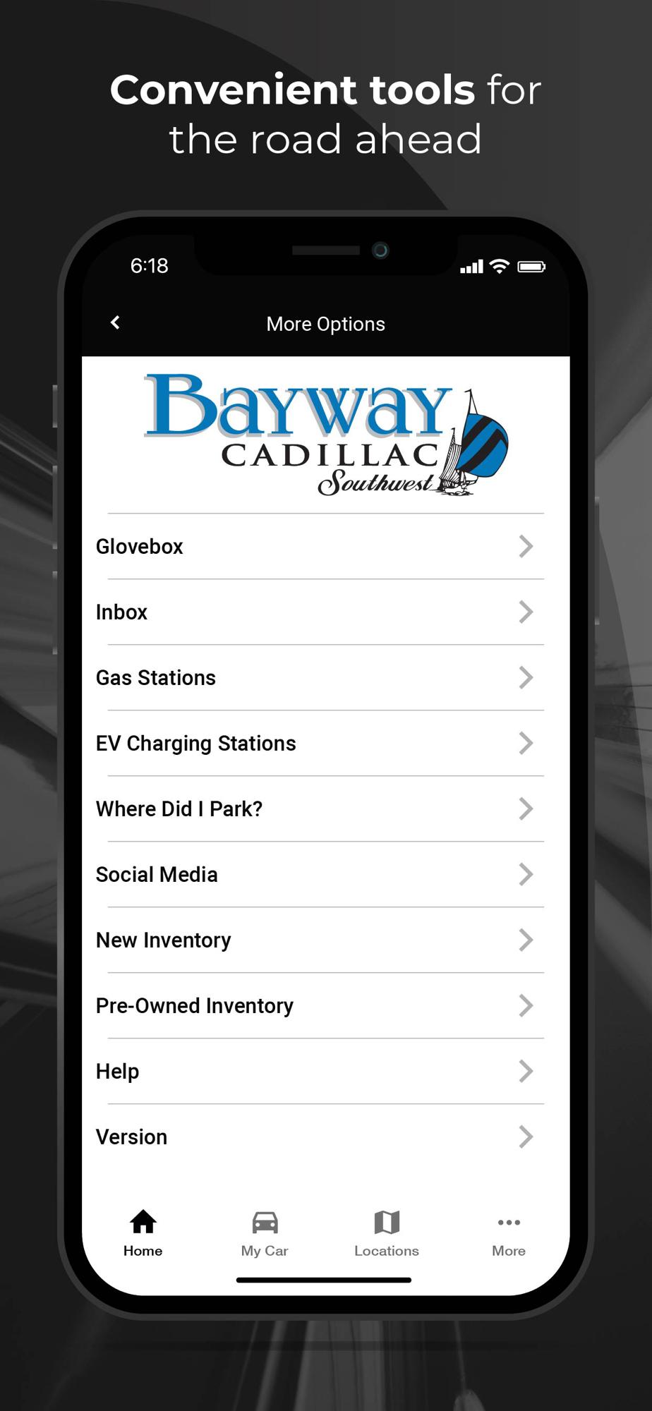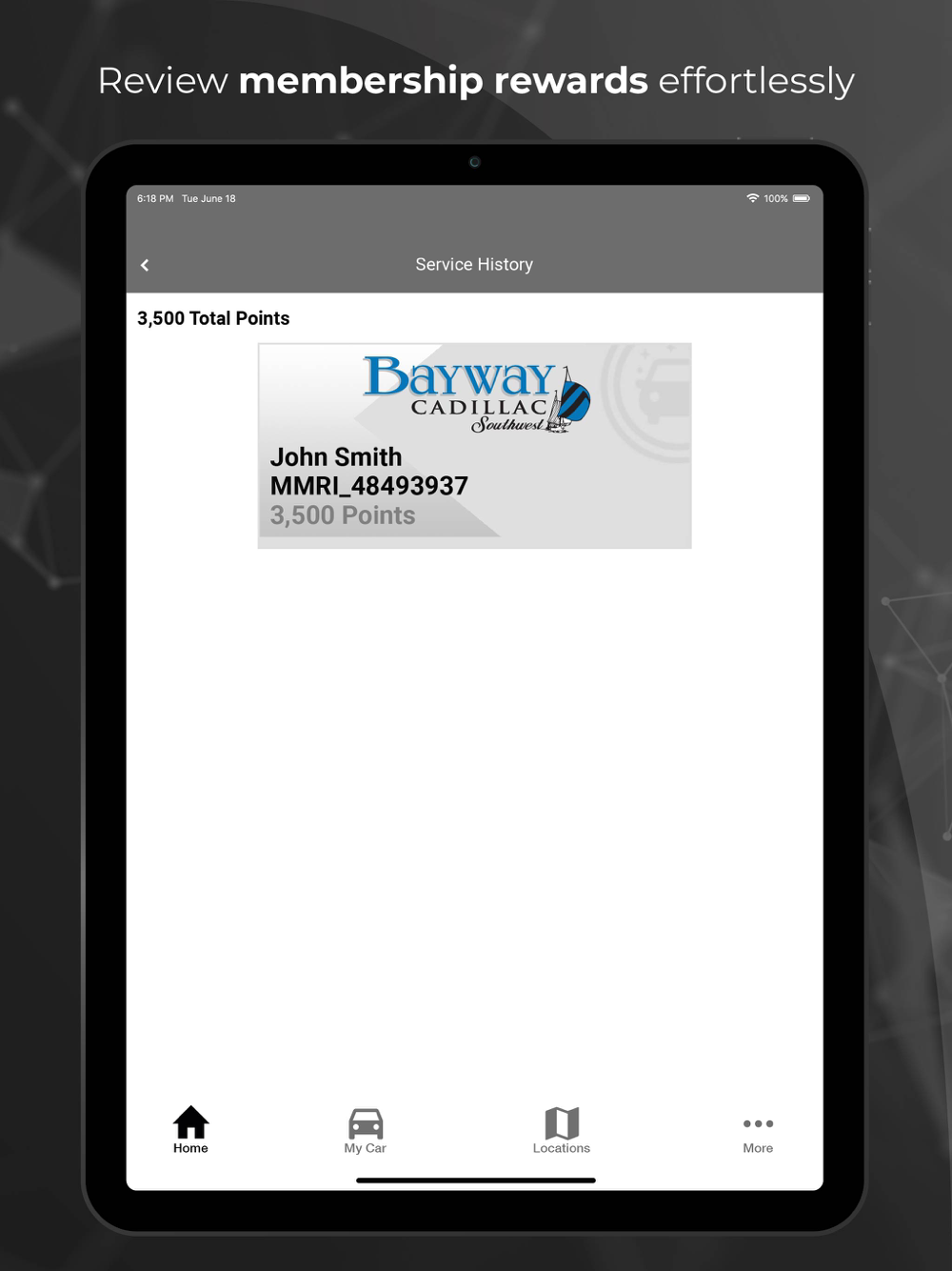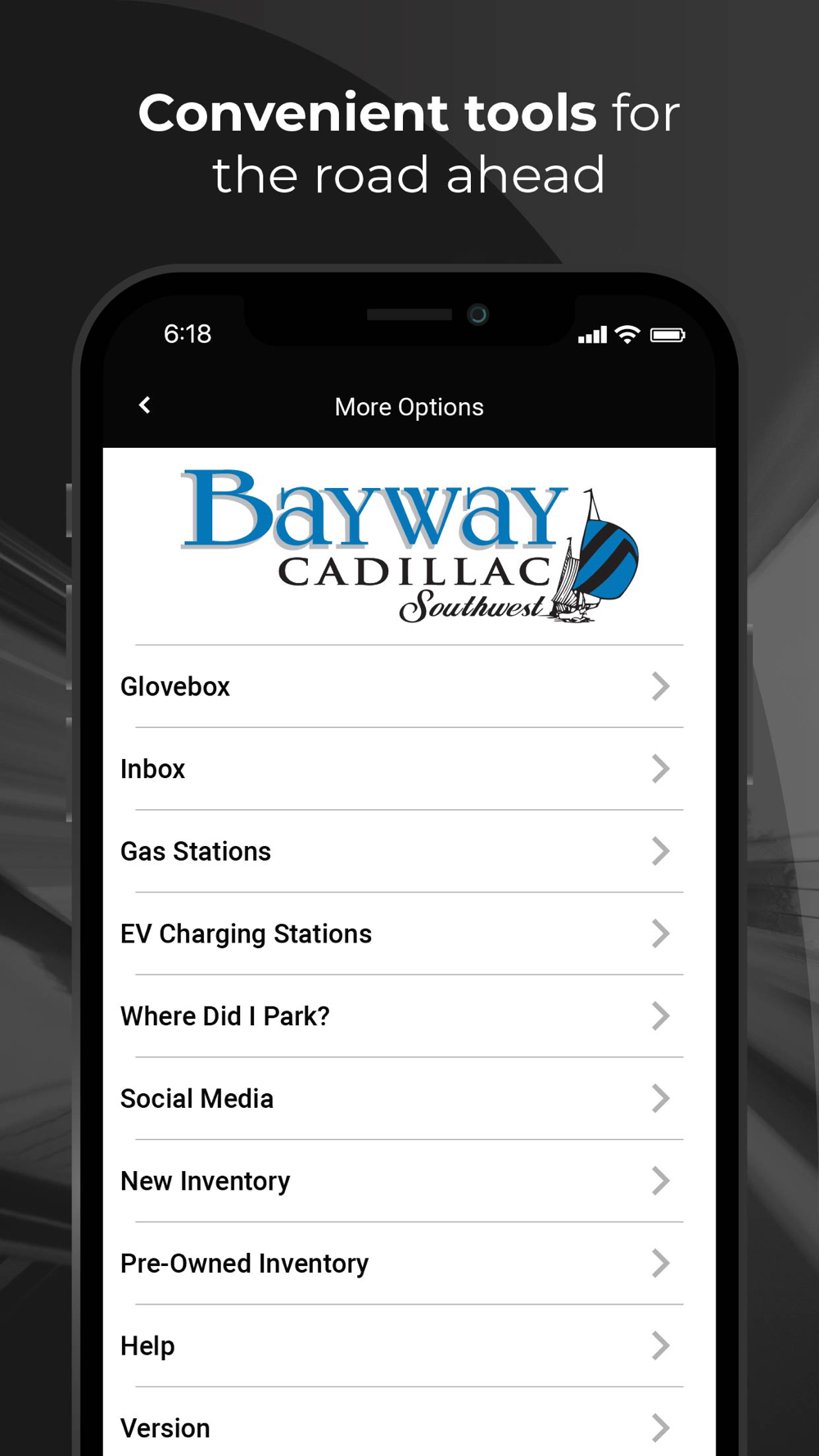 The Bayway Cadillac Southwest Mobile App is designed for customers of our Rewards program. The dealership has locations in Houston TX. This app allows you to view and track your participation in the dealership's Rewards program and to view the service history of your vehicle. In addition, you are eligible for exclusive deals on service made available only to Mobile App Users!