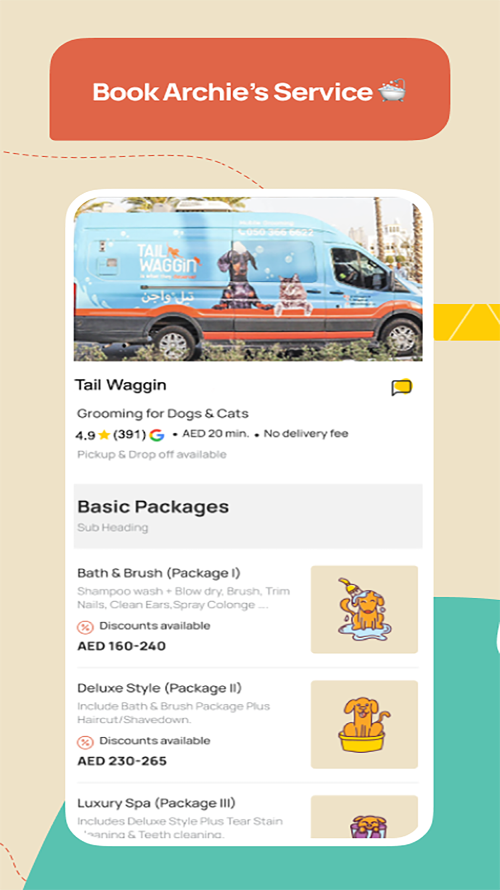 Our mobile app is created to serve pet parents and their furbabies in the UAE by allowing you to browse, compare, and book services to your home based on your pet’s preferences.