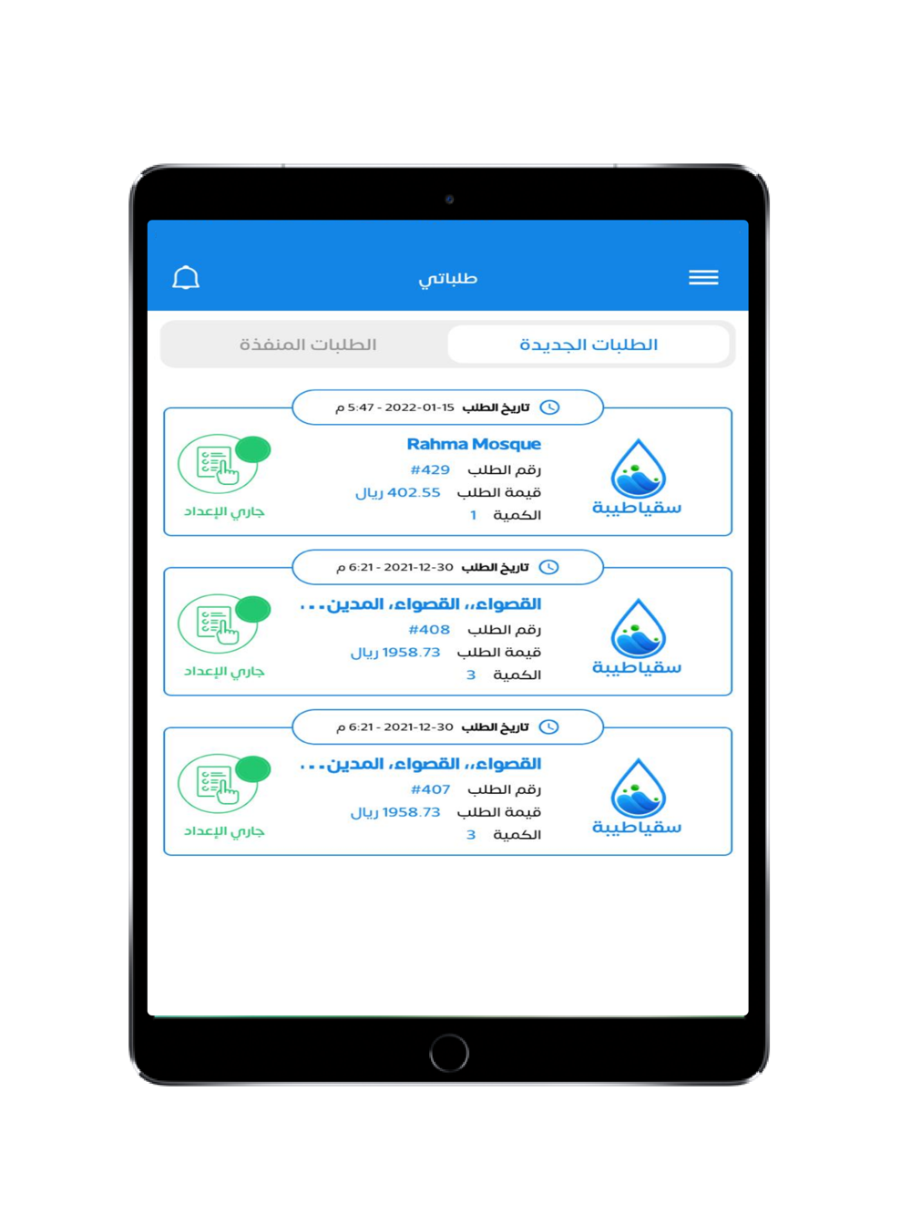 تطبيق سقيا طيبة يصلح لأصحاب شركات انتاج المياه المعبأة هو من أسهل و أسرع التطبيقات لطلب توصيل عبوات المياه للعملاء