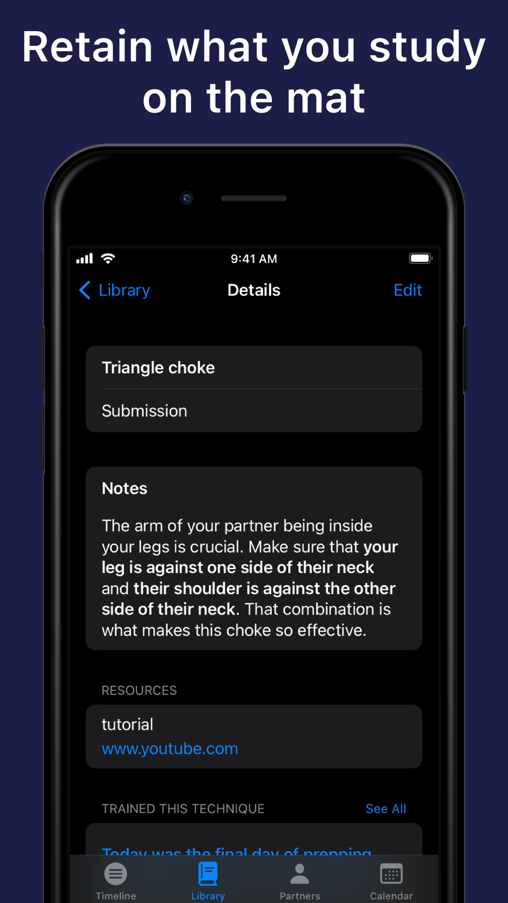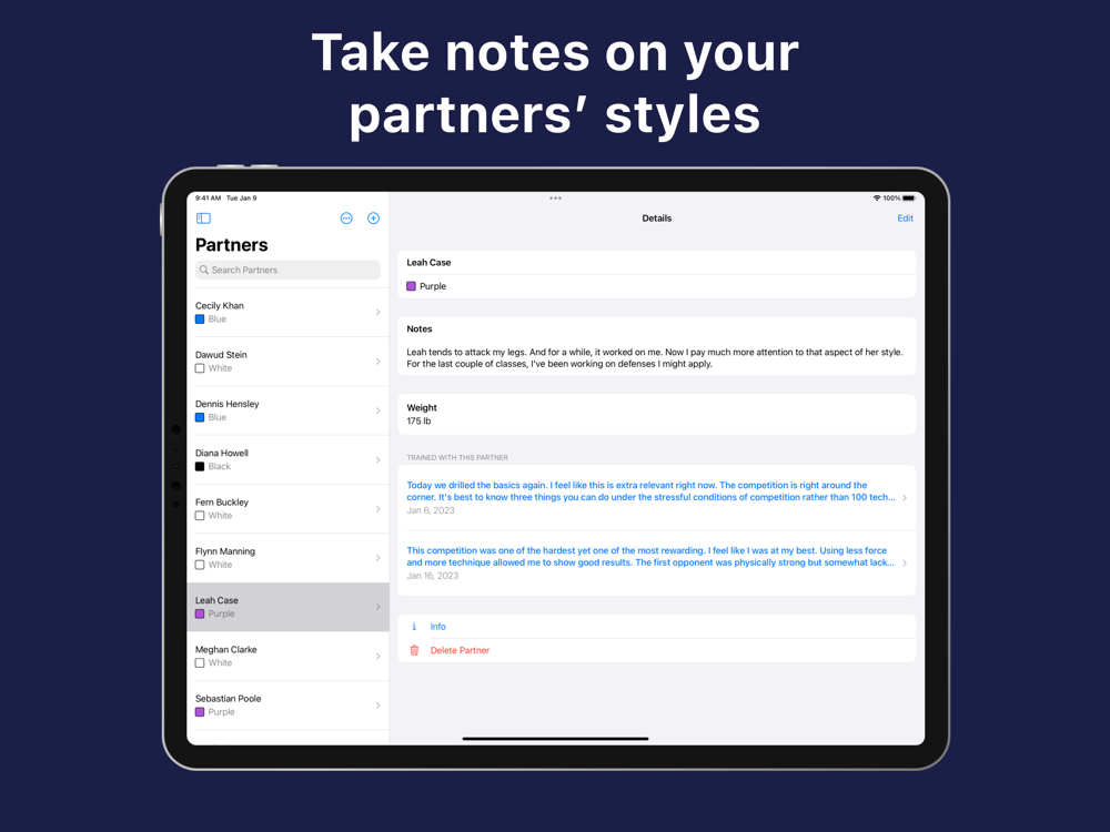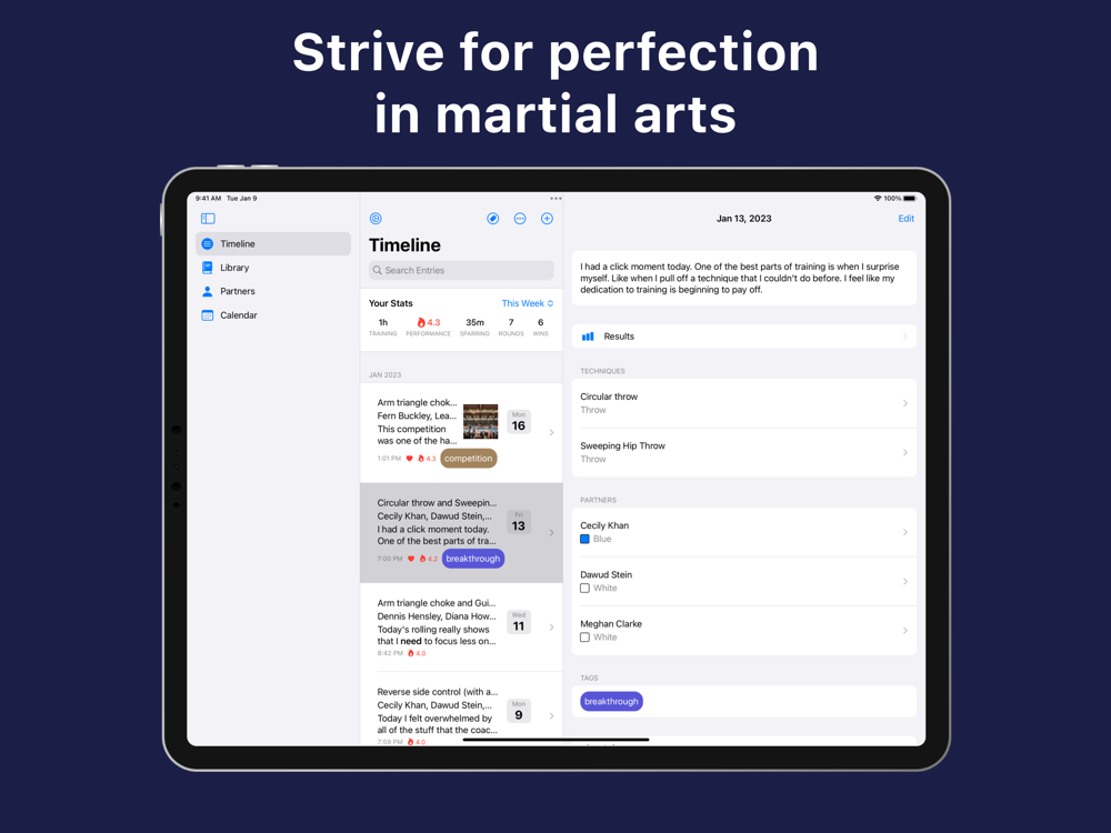 ProgressGuard is a journaling app built for martial artists who strive for perfection in their art. After each training session, athletes can log their results and reflect on what they learned on the mat. The app also serves as your library where you can grow and safeguard your arsenal of techniques. So forgetting what you studied the other day becomes a thing of the past. Every jiu-jitsu player, judoka, or boxer has a unique approach. So the app lets you add your training partners and take notes on their styles. And with features like training reminders and a calendar, you'll be more motivated than ever and never skip another class. The app will set you on a path to a more mindful martial arts journey.